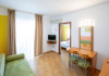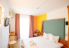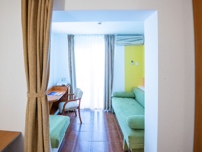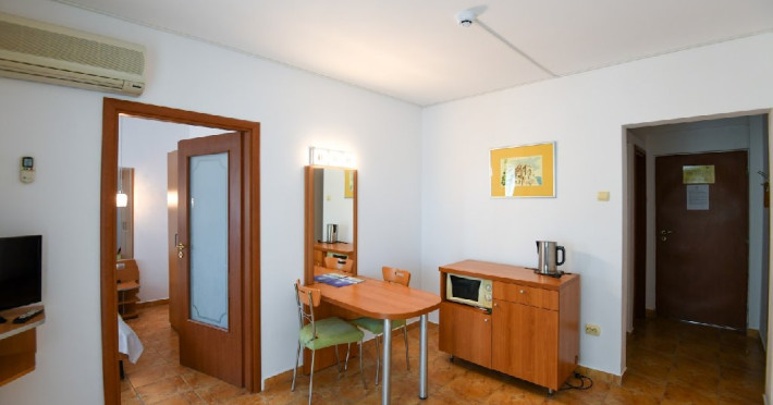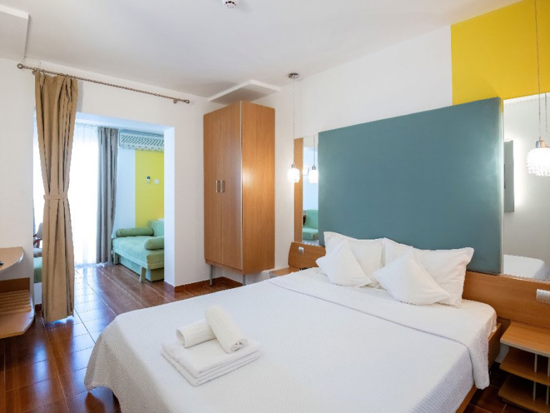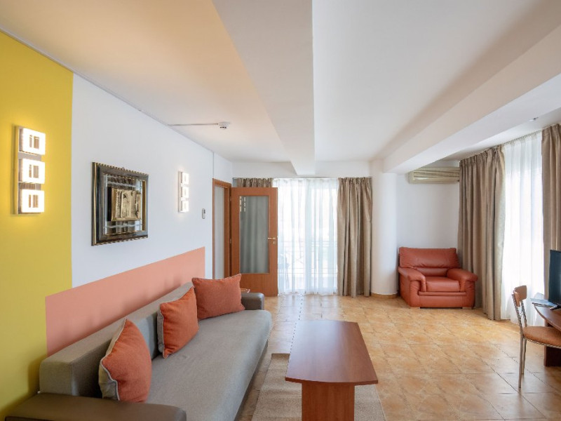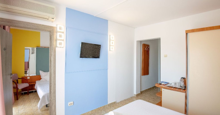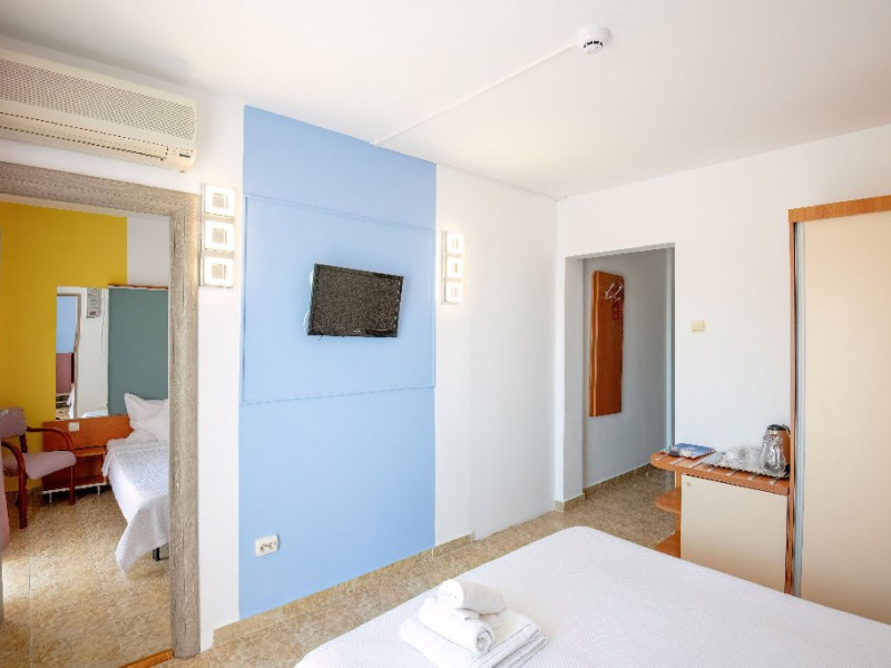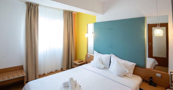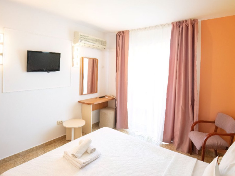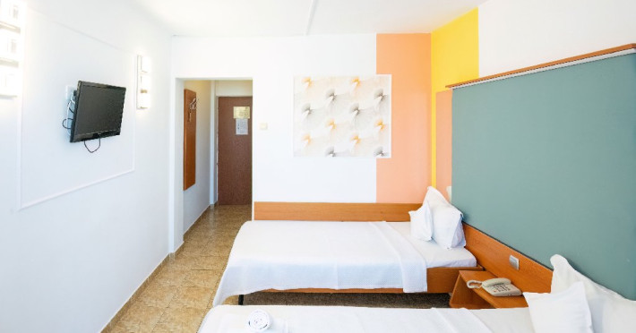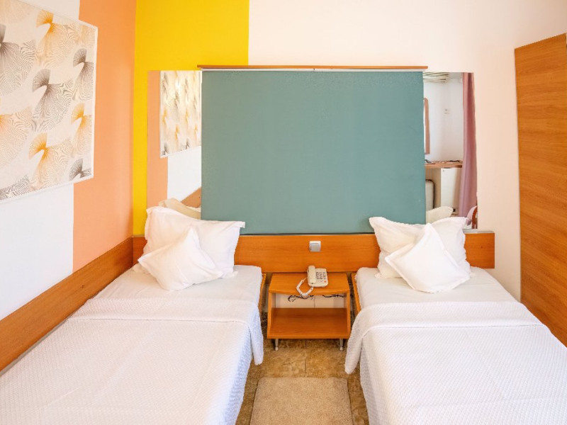 Dotari camere: Camerele sunt dotate cu AC, TV, minibar (contra cost), internet, telefon, seif, uscator de par, balcon. Camerele duble 3* - sunt dotate cu pat matrimonial sau twin, TV, internet, balcon, AC si racitor. Capacitate maxima: 2 adulti + 1 copil (0 - 11,99 ani). In aceasta camera nu se poate pune pat suplimentar. Superior Family (fostele camere superioare): este un singur spatiu de cazare, cu pat matrimonial, canapea extensibila, TV, internet, balcon, AC si racitor ; intre zona cu pat si zona cu canapea exista o perdea separatoare. Capacitate maxima: 3 adulti si 1 copil de maxim 11.99 ani sau 2 adulti + 2 copii (0-17.99 ani). Apartamentele - au living si dormitor, pat matrimonial si canapea extensibila, cu usa intre cele doua spatii, TV in fiecare camera, internet, balcon, o singura baie, AC in living si racitor. Capacitate maxima: 4 adulti sau 3 adulti sau 2 adulti + 1 copil max 18 ani sau 2 adulti + 2 copii (0-17.99 ani). Apartamentele superior vedere panoramica- au living si dormitor, pat matrimonial si canapea extensibila, cu usa intre cele doua spatii, TV in fiecare camera, internet, balcon,o baie, AC in fiecare camera, si racitor. Livingul are o vedere panoramica, superba, catre mare. Capacitate maxima: 4 adulti sau 3 adulti sau 2 adulti + 1 copil max 18 ani sau 2 adulti + 2 copii (0-17.99 ani).