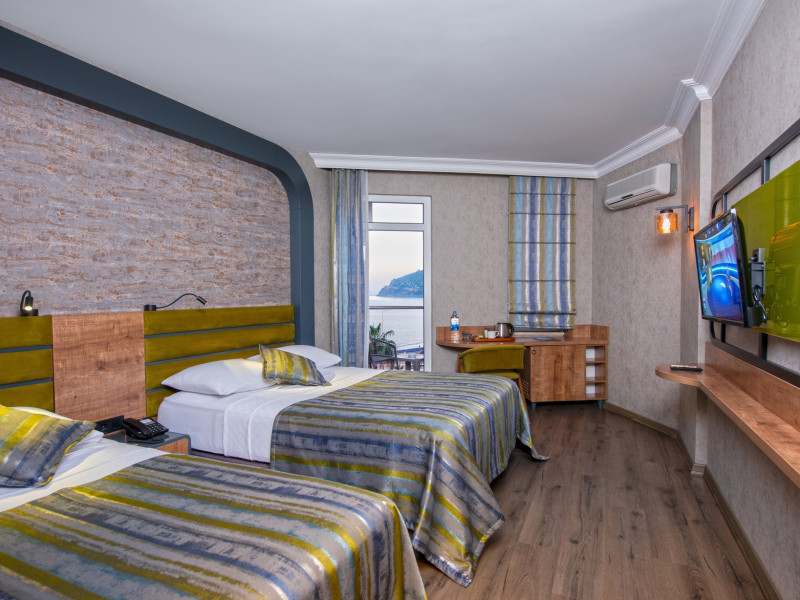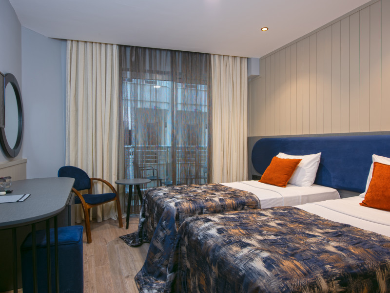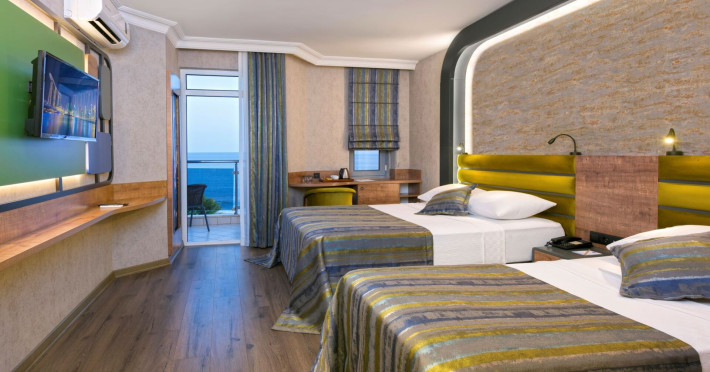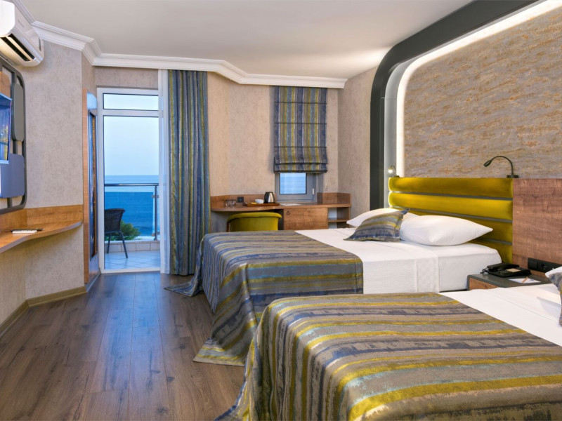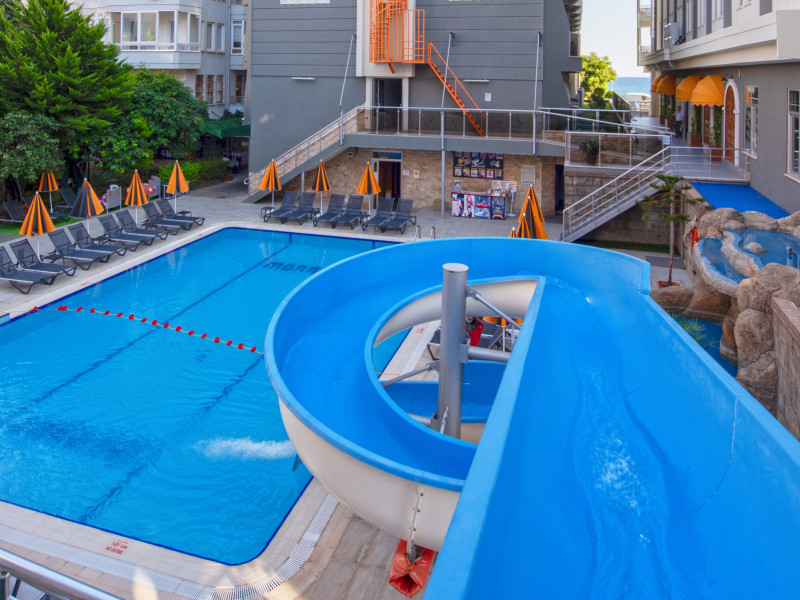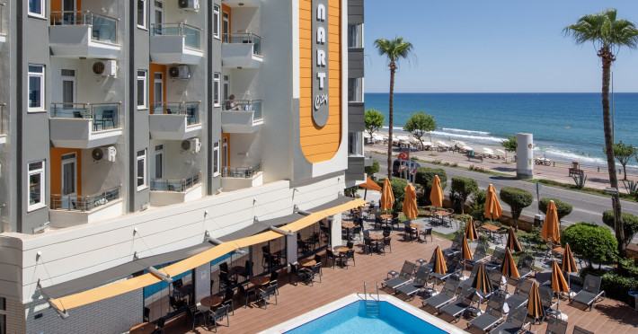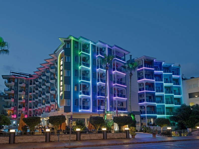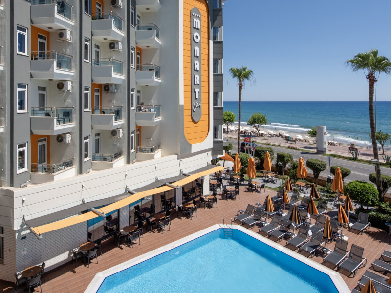 Around 50 m from a beach is located the accommodation Monart City. The city centre is around 3 km away. Cold drinks are served at the beach bar. The hotel is equipped with a lobby bar. Around 50 m from a beach is located the accommodation Monart City. The city centre is around 3 km away. Cold drinks are served at the beach bar. The hotel is equipped with a lobby bar. Catering As catering services the hotel offers all-inclusive. Enjoy your lunch from the buffet. Dinner is served as a buffet with salads. The drinks menu of the hotel includes coffee and tea. Distances Airport: approximately at 60 km