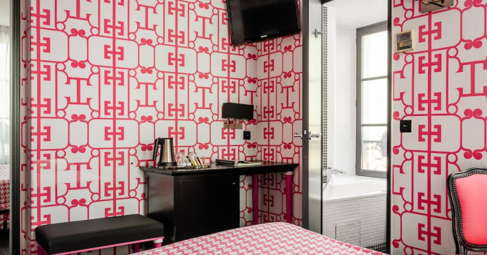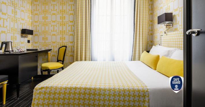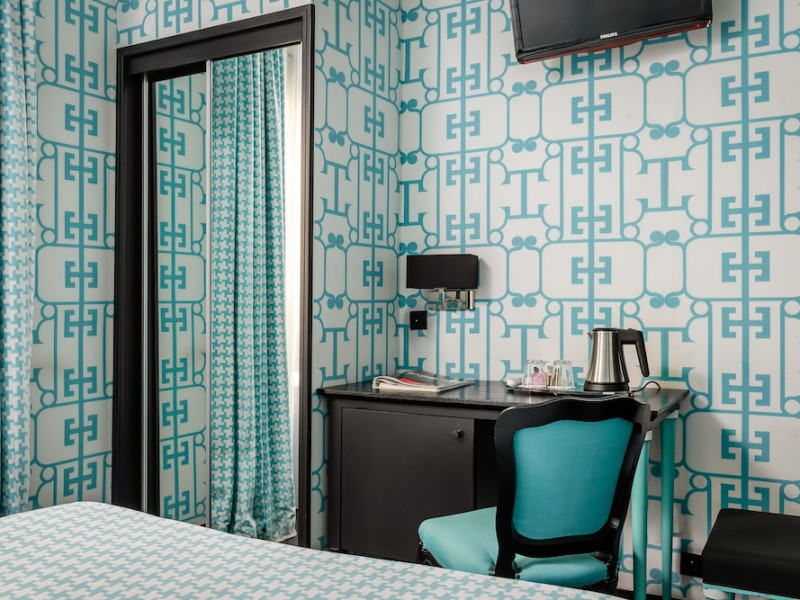 Located in Paris's 17th arrondissement, near Parc Monceau, Hôtel Monceau Elysées offers a charming stay with convenient access to attractions like the Champs-Élysées and Arc de Triomphe. The hotel features 29 air-conditioned guestrooms with complimentary wireless internet, flat-screen televisions, minibars, safes, desks, and private bathrooms with complimentary toiletries and hair dryers. A buffet breakfast is served daily (surcharge). Additional amenities include a 24-hour front desk, concierge services, complimentary newspapers in the lobby, and dry cleaning/laundry services. Courcelles Metro Station is nearby, providing easy access to the city. Public parking is available nearby for an extra cost. The MONCEAU ELYSEES is a Tourist hotel. The nightlife/restaurants are easily accessible by taxi or bus from the hotel.