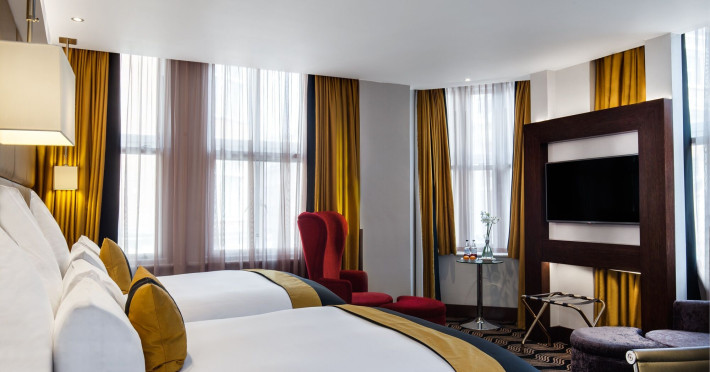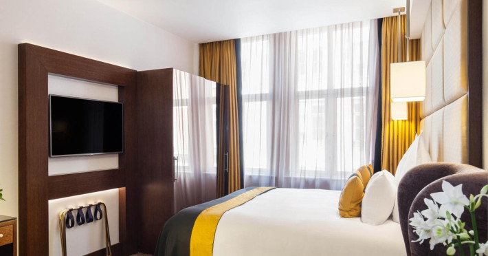 Montcalm Piccadilly Townhouse is a boutique hotel in London's West End, 300 metres from Leicester Square and a 5-minute walk from Piccadilly Circus. Rooms feature free WiFi, mood lighting, standard/Queen/King size beds with cotton linen, air conditioning, satellite TV, a work desk, and a luxury bathroom with free toiletries and bathrobes. Additional amenities include a fitness centre, in-room coffee/tea service, a secure digital safe (laptop size), iron and ironing board, hairdryer, telephone with voicemail, and European, USA, & UK plug access points. A daily newspaper is provided, and 24-hour room service is available. Breakfast is served at GAILs bakery (7am-11am) for guests with breakfast included in their reservation. Please note: A pre-authorization for the first night's stay will be taken 48 hours prior to arrival. Payment is taken on arrival. Some rooms offer a bathroom television and heated mirrors. A frigobar is available in rooms. Electronic door locks are in place. The Montcalm Piccadilly Townhouse, London West End is a Tourist hotel. Located in London area. The nightlife/restaurants are located in the hotel.