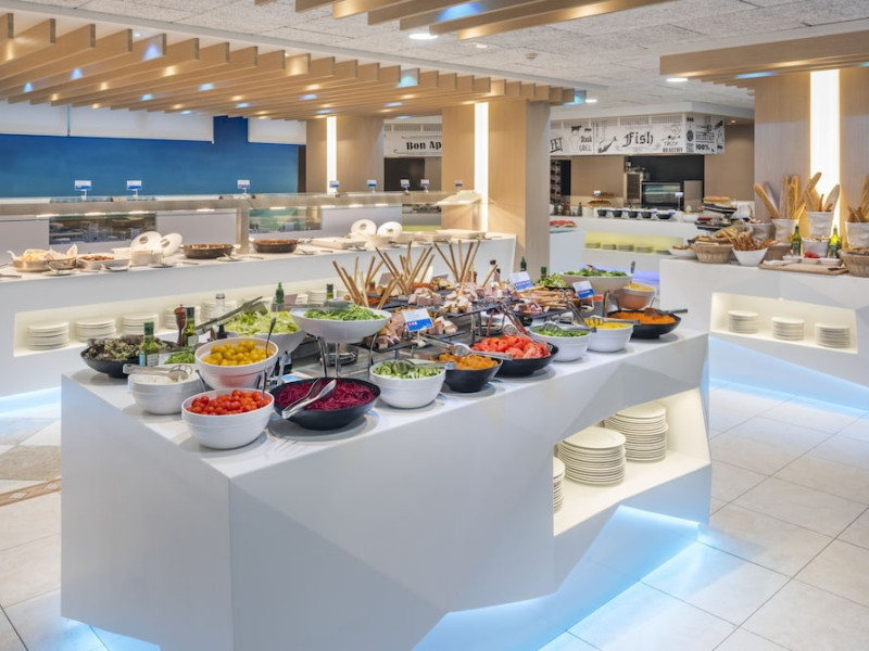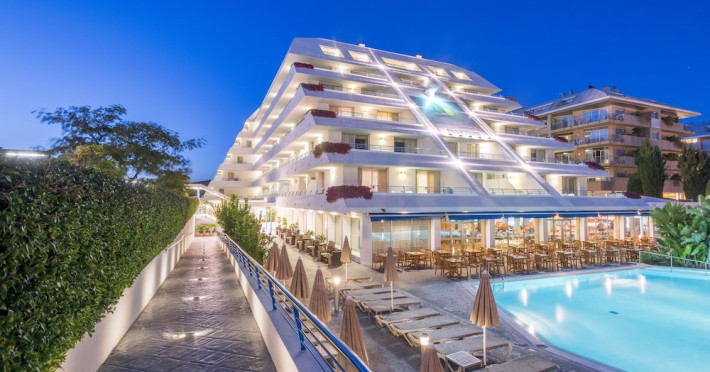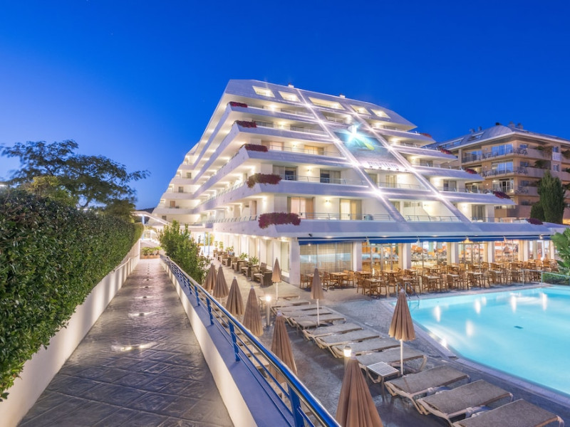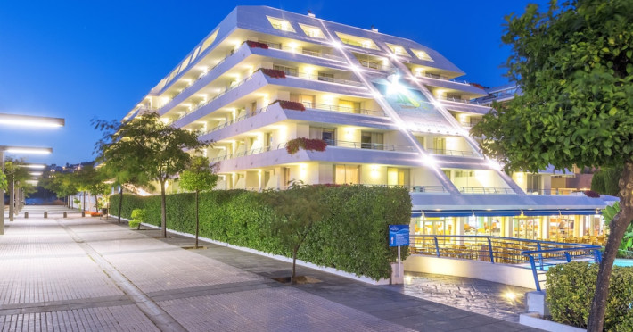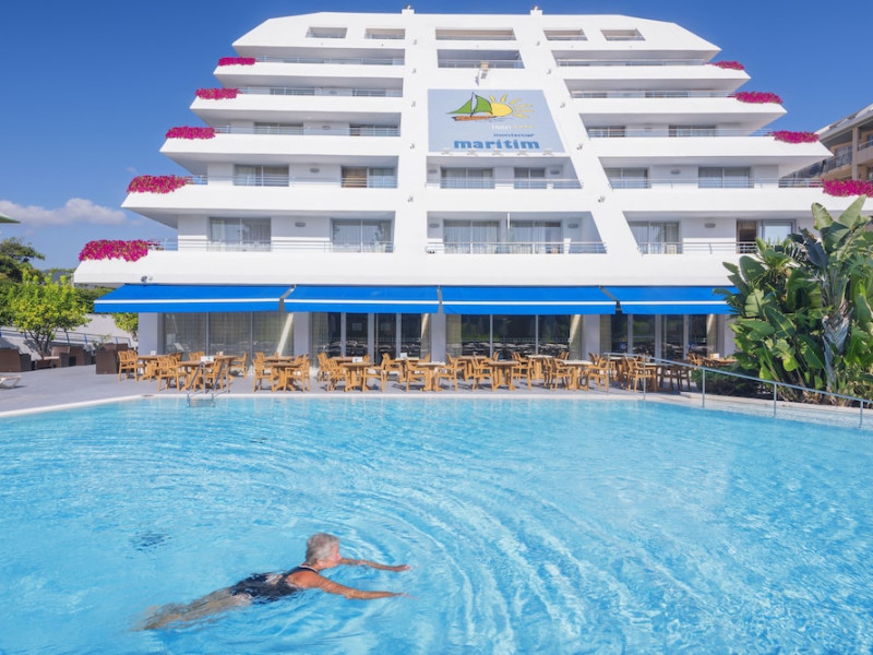 Guests can enjoy recreational amenities including an indoor pool, sauna, and a seasonal outdoor pool. Dining options include a restaurant, a coffee shop/cafe, a bar/lounge, and a poolside bar, with room service available during limited hours. Additional amenities include complimentary wireless internet access, an arcade/game room, tour/ticket assistance, dry cleaning/laundry services, and a 24-hour front desk. Conference space and a meeting room are available. Free self-parking is available onsite. Les Dunes Beach and Les Caletes Beach are within 0.3 miles. The nearest airport is Barcelona El Prat Airport, 53.2 miles away. The Montemar Maritim is a Tourist hotel. The nightlife/restaurants are located in the hotel.