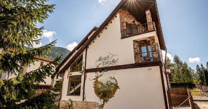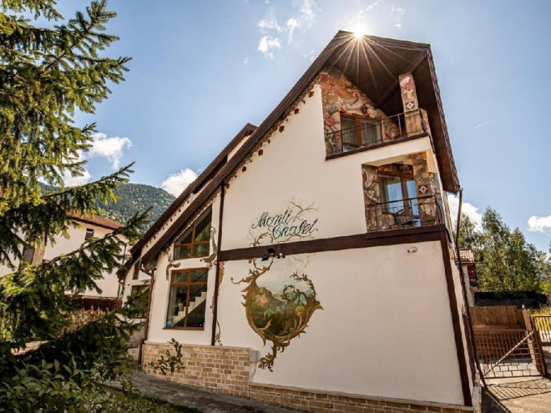 Situata central in Poiana Braov, la numai 10 minute de mers pe jos de partiile de schi, Pensiunea Monti Chalet ofera cazare i vederi superbe la munte. Aceasta dispune de 10 camere duble, dintre care 9 camere au pat matrimonial si una are paturi twin. Toate camerele sunt decorate cu gust, cu mobilier de inalta calitate, design minimalist, baie privata cu uscator de par, televizoare cu ecran plat, ceainic, articole de toaleta iar unele camere au balcoane cu vederi superbe. Wi-Fi gratuit este disponibil in toate zonele publice. Oaspetii de la Monti Chalet beneficiaza de acces la un centru spa, care include un jacuzzi interior, sauna uscata si o zona de relaxare. Tarif centru spa - 50 lei / persoana / ora