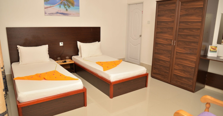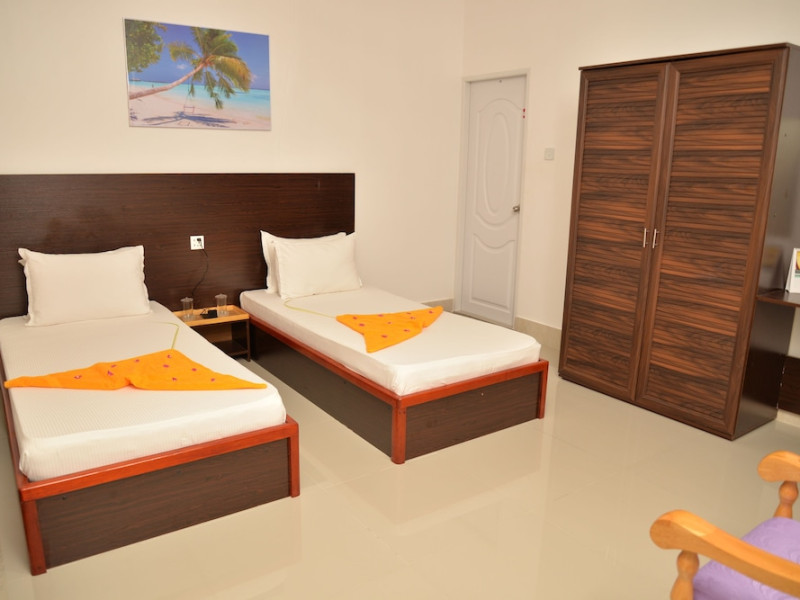 Hotel characteristics: ; 3 rooms Location: A great place to have a rest after long walks around the city. Guest house «Moodhumaa Inn» is located in Guraidhoo (Kaafu Atoll). This guest house is located in the very center of the city. In the morning, have a cup of coffee while looking at the city from the window. You can take a walk and explore the neighbourhood area of the guest house â Kandooma Beach At the guest house: There are other services available for the guests of the guest house. For example, a laundry, ironing and a safe-deposit box