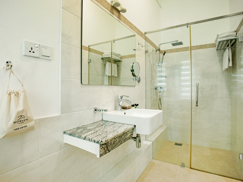 Located in Colombo's Kollupitiya area, Morven Hotel Colombo offers a comfortable stay with complimentary Wi-Fi throughout the property. The hotel features 91 air-conditioned rooms equipped with flat-screen televisions with cable programming, minibars, safes, desks, and private bathrooms with rainfall showerheads and complimentary toiletries. Guests can enjoy amenities such as a fitness center, spa, outdoor pool, terrace, and poolside bar. Dining options include a restaurant, coffee shop/cafe, and room service. A bar/lounge is also available. The hotel provides a 24-hour front desk, concierge services, luggage storage, daily housekeeping, and complimentary newspapers in the lobby. Additional services include a roundtrip airport shuttle (surcharge), taxi service, car hire, and free valet parking. Buffet breakfasts are available daily for a fee. Nearby attractions include the United States Embassy Colombo, Liberty Plaza, and Crescat Shopping Mall. The Morven Hotel Colombo is a hotel.