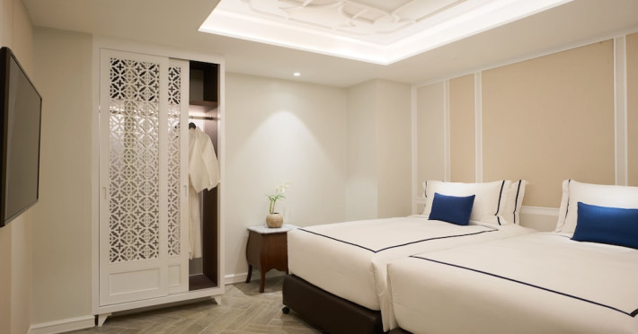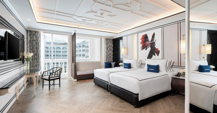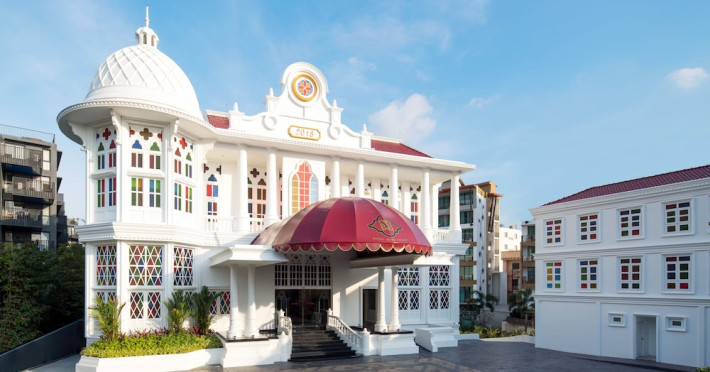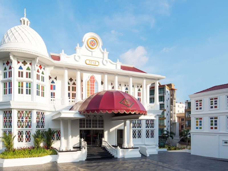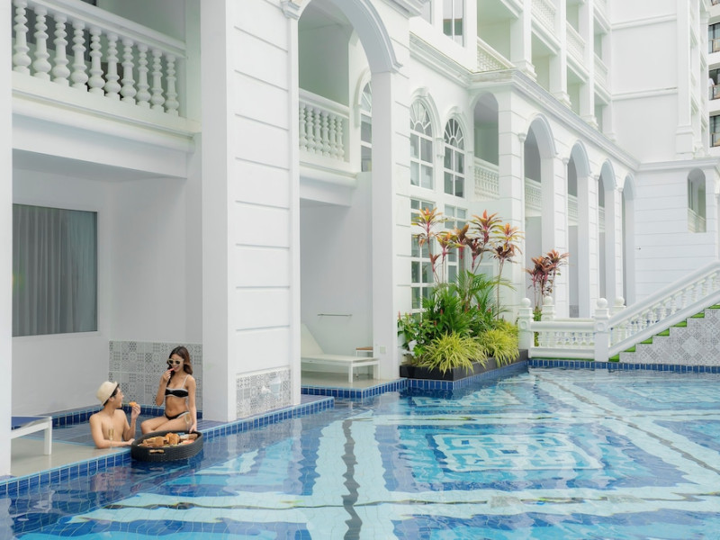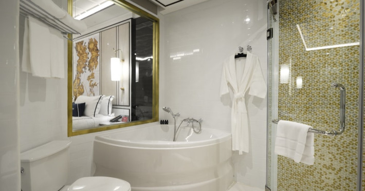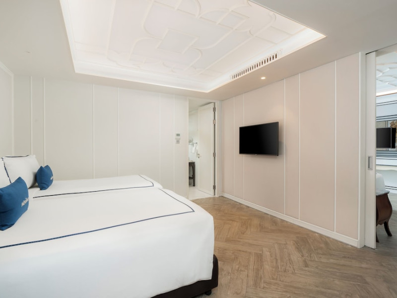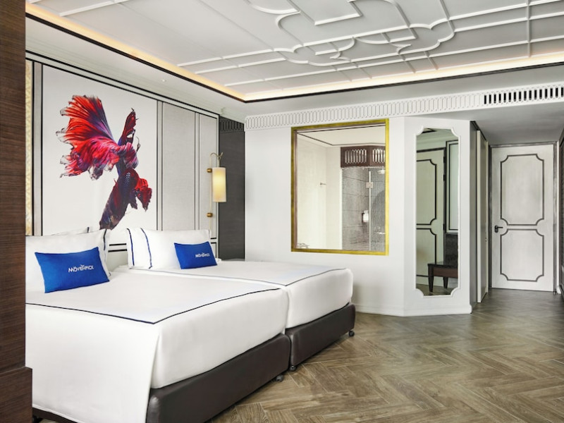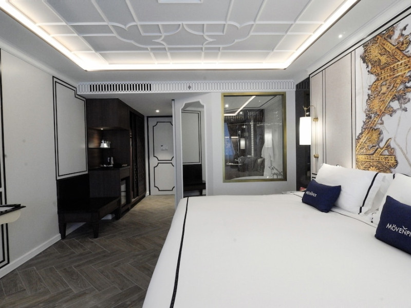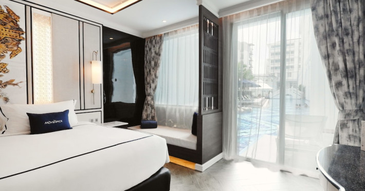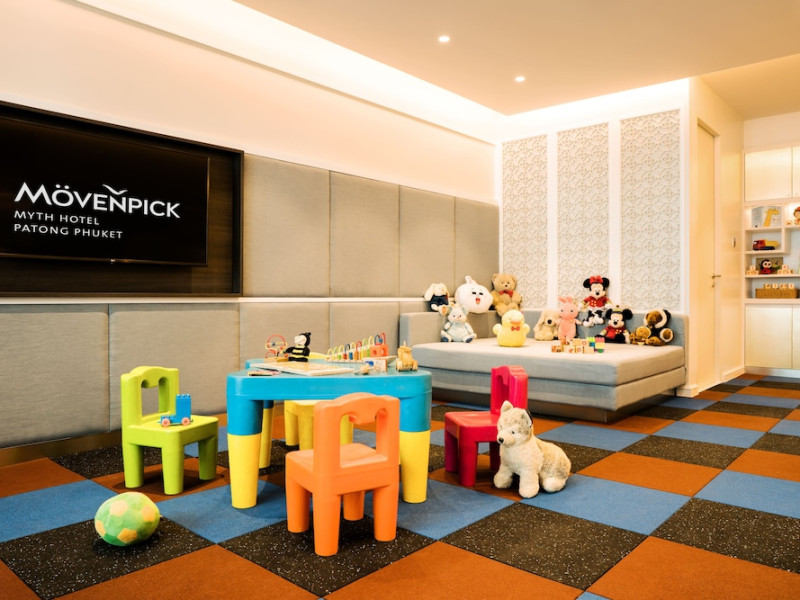 Located in the shopping district of Patong, Mövenpick Myth Hotel Patong Phuket offers convenient access to Patong Beach and Jungceylon Shopping Center. The hotel features 235 air-conditioned rooms, each with a refrigerator, flat-screen TV, and private balcony. Bathrooms include separate bathtubs and showers with deep soaking bathtubs and rainfall showerheads. Guests can enjoy complimentary Wi-Fi, an outdoor pool, a fitness center, and a spa offering massages, body treatments, and facials. Dining options include a restaurant, 24-hour room service, a poolside bar, and two bars/lounges. A buffet breakfast is available for a fee. The hotel also provides concierge services, a 24-hour front desk, a business center, dry cleaning/laundry services, a complimentary beach shuttle, a sun terrace, and a kids' club. A roundtrip airport shuttle is available for a surcharge, and free self-parking is provided onsite. The Movenpick Myth Hotel Patong is a hotel.