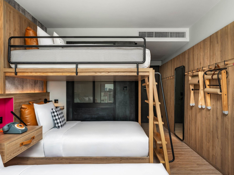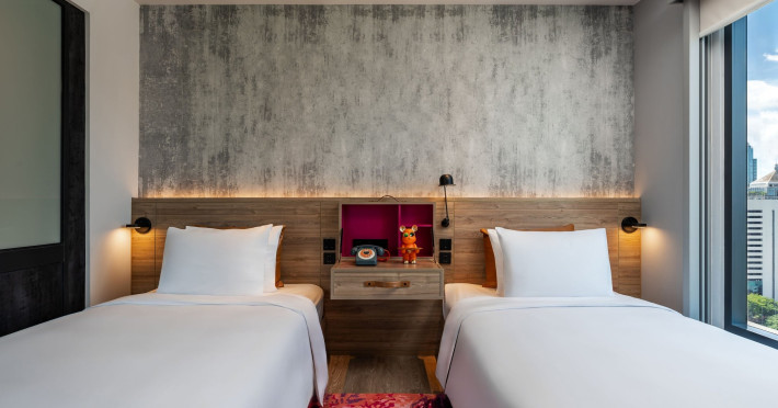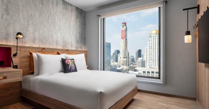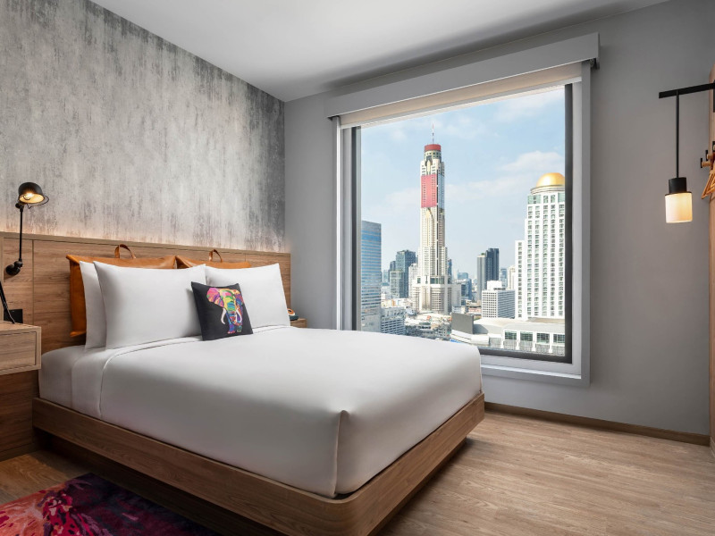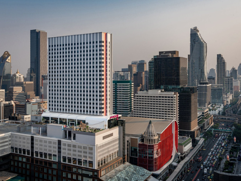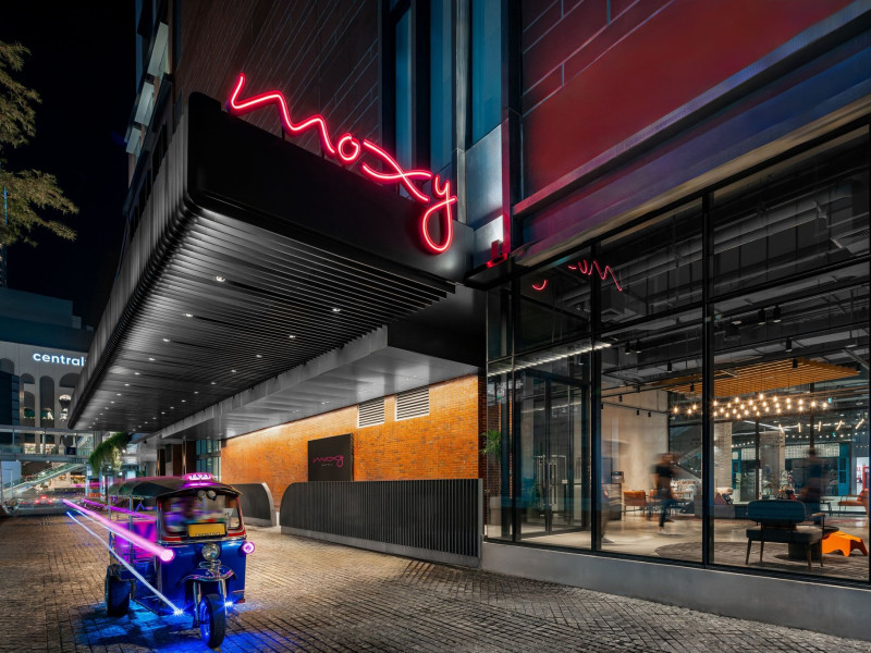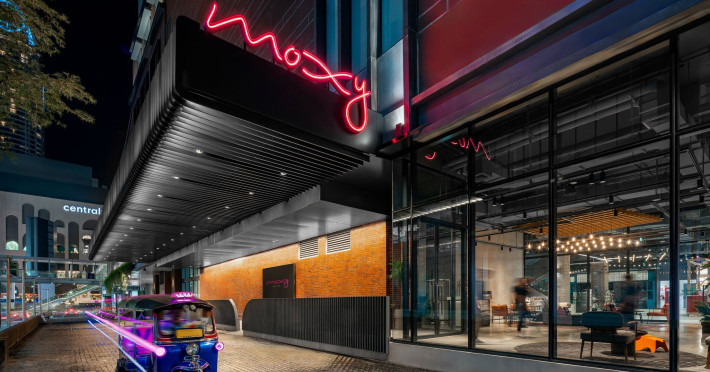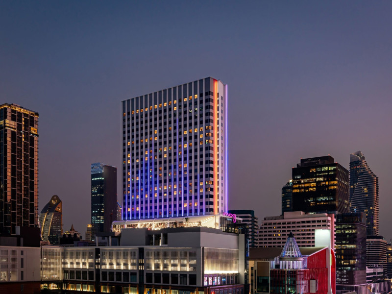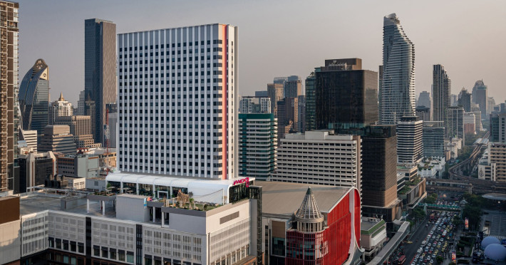 Tap into the rhythms of the city at our central Bangkok hotel, Moxy Bangkok Ratchaprasong, strategically perched in the heart of the action. The first Moxy Hotel in Thailand and the largest in Asia Pacific is a vibrant place to access a shopping wonderland, a foodies dream, and a treasure trove of iconic attractions all just steps from Chit Lom BTS station. Take your pick from our 504 chic rooms, recharge at the top-notch gym, nibble on delights at the bustling Moxy Bar and Restaurant and join the lively events right in the lobby. For the workaholics who do not mind a splash of play, our Library and Plug-In area turn serious work into seriously good times. At Moxy Bangkok Ratchaprasong we never take ourselves too seriously. But we are always ready to show you a good time with smartly designed rooms, stylish communal spaces, and a dining and cocktails scene you will love. Immerse into a rejuvenating stay at Moxy in Bangkok Thailand.