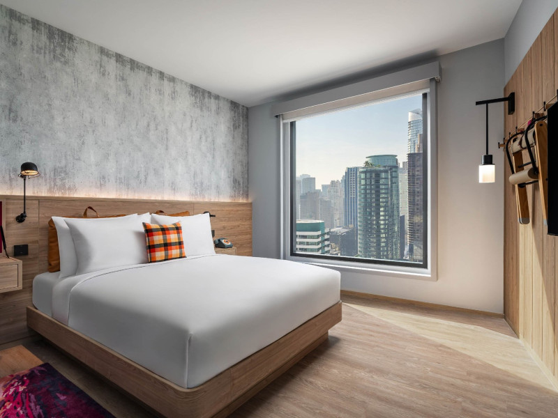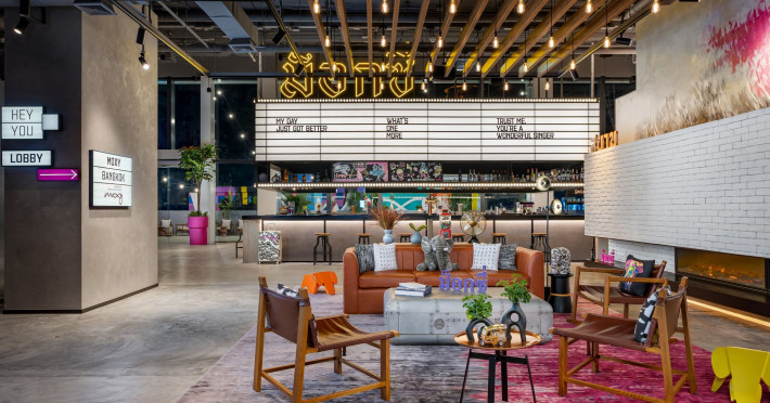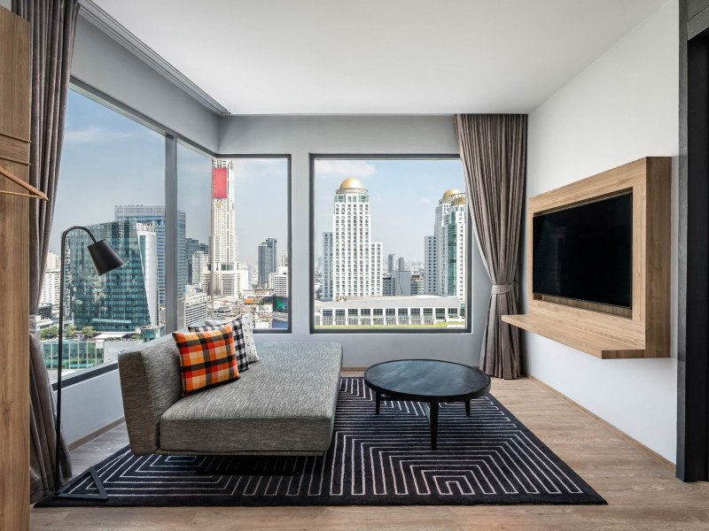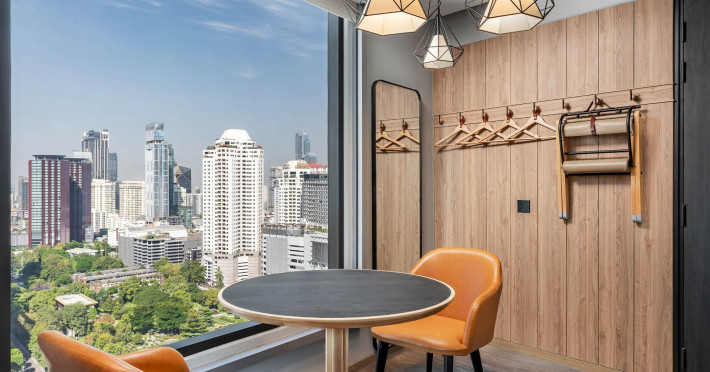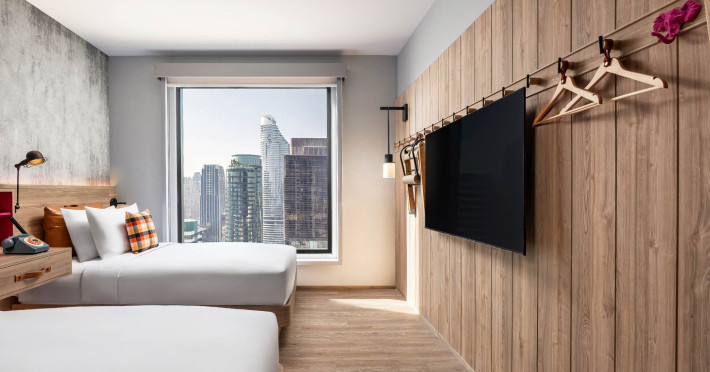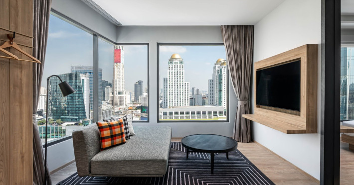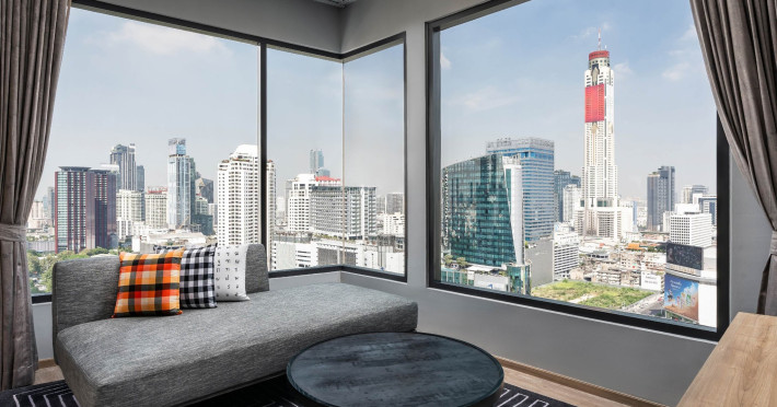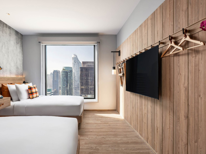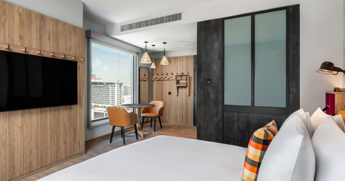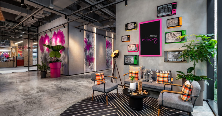 Tap into the rhythms of the city at our central Bangkok hotel, Moxy Bangkok Ratchaprasong, strategically perched in the heart of the action. The first Moxy Hotel in Thailand and the largest in Asia Pacific is a vibrant place to access a shopping wonderland, a foodies dream, and a treasure trove of iconic attractions all just steps from Chit Lom BTS station. Take your pick from our 504 chic rooms, recharge at the top-notch gym, nibble on delights at the bustling Moxy Bar and Restaurant and join the lively events right in the lobby. For the workaholics who do not mind a splash of play, our Library and Plug-In area turn serious work into seriously good times. At Moxy Bangkok Ratchaprasong we never take ourselves too seriously. But we are always ready to show you a good time with smartly designed rooms, stylish communal spaces, and a dining and cocktails scene you will love. Immerse into a rejuvenating stay at Moxy in Bangkok Thailand.