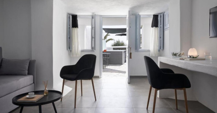 Fully renovated in 2020- 2021, our Family-Friendly Hotel has 25 rooms and suites with balconies/patios for private use facing the volcanic islands of Santorini & the famous Caldera. Their traditional Santorinian architecture offers them their distinctive character.