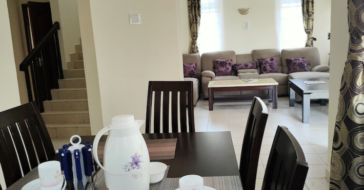 Located in Mtwapa, Mombasa, near the ocean, this accommodation offers an outdoor pool, terrace, and garden. It features air-conditioning, a kitchen with a refrigerator and an oven, a desk, and a flat-screen television with cable/digital programming. Complimentary wireless internet access is provided. Services include daily housekeeping, laundry facilities, and luggage storage. Guests have access to an airport shuttle for a surcharge and free self-parking. Nearby points of interest include Bamburi Beach, Haller Park, Mtwapa Mall, and Nyali Beach. Mombasa (MBA-Moi Intl.) is the preferred airport. The Mtwapa Holiday Home is a hotel.