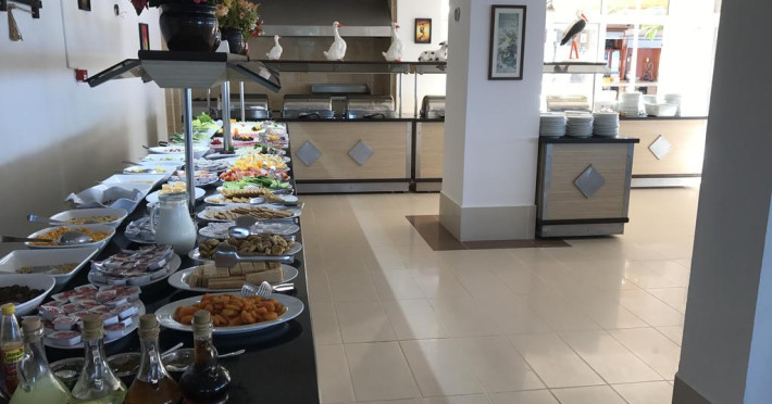 Restaurantul hotelului, cu vedere panoramică la mare, servește un meniu à la carte și preparate sub formă de bufet. Oaspeții pot lua masa în interior sau în aer liber și pot comanda băuturi răcoritoare la bar.