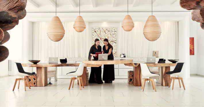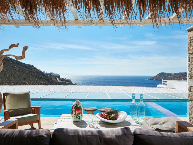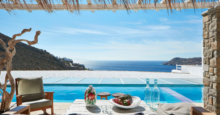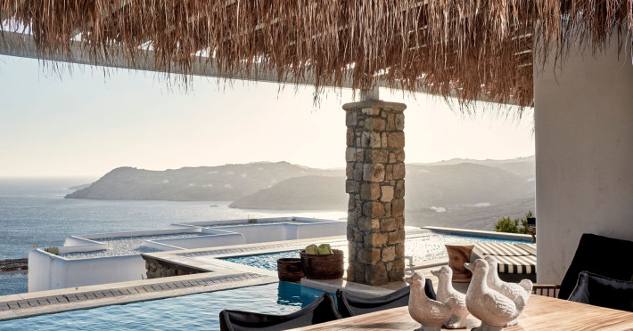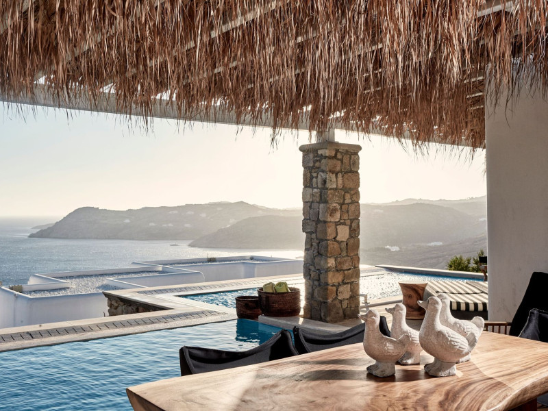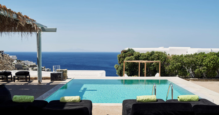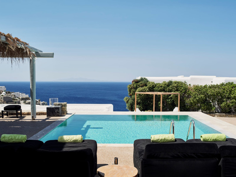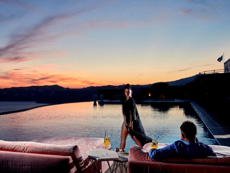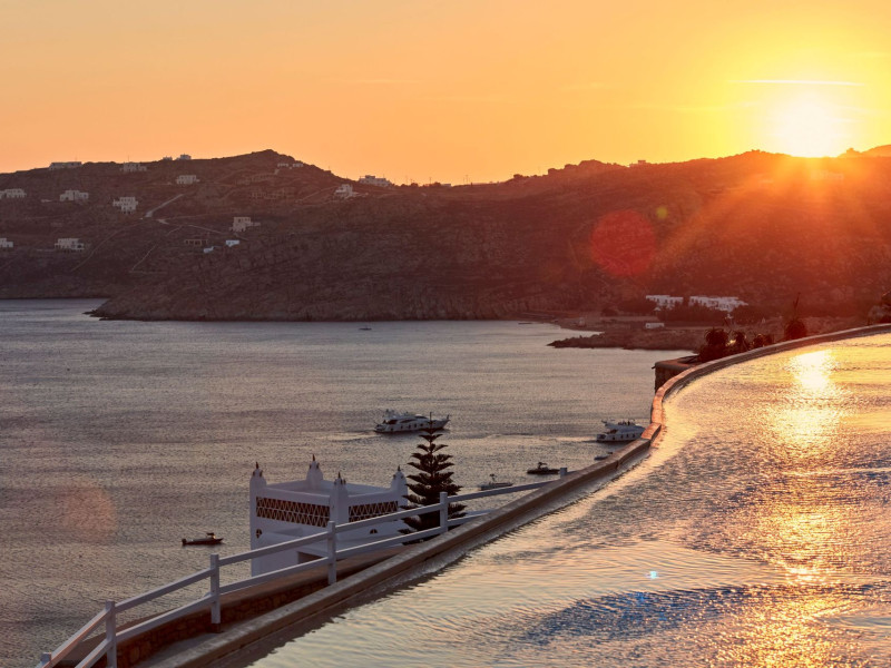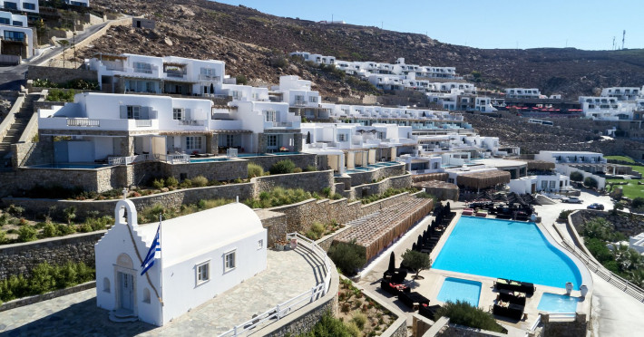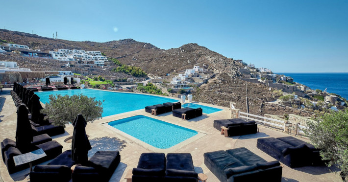 The Myconian Villa Collection Resort is situated above beautiful Elia beach, offering the ultimate in style and luxury on the stunning island of Mykonos. Discreet opulence and privacy are combined with modern facilities, providing an indulgent getaway for guests. Hypnotic panoramic views of the Aegean Sea endless blue along with the magnificent interiors influenced by the traditional Myconian architecture and a seamless blend of contemporary design, modern amenities and exemplary service offered by the experienced staff, create an unforgettable experience.Guests can choose to have lunch or dinner in one of the two A la Carte Restaurants of our property, relax at the infinity pool by the Pool bar enjoying a fresh cocktail, spoil themselves by using a variety of services such as the sunbeds and umbrellas on the beach, indulge in a rejuvenating body treatment in the full service Spa or take advantage of the shuttle service into Town. The variety of accommodation options and services, offer the quality standards of a five star hotel but with customized service that guarantees a memorable stay.Having an amazing collection of luxury Guestrooms, Suites and In-House Villas, Myconian Villa Collection offers the ideal choice whether guests are looking for a romantic hideaway, a family vacation or a group of friends’ getaway.Concierge ServicesLuxury transfers from & to Mykonos port, airport*Private transfers to any location around the island*Welcome champagne & fresh juices upon arrival (Villas only)Express Check in / outMultilingual StaffDedicated Guest Relations serviceRestaurant reservations & 24/7 concierge services for Mykonos activitiesPrivate Yacht charter & helicopter rentals*Valet car serviceMaid service twice dailyRoom Service 24/7Daily newspaper*Laundry, garment pressing & dry cleaning servicesDoctor on call*Babysitting service*Flower arrangements*Water sports on the beach (External contractor) Exclusive Guest & Concierge Services for Suites/Villa Experience/Unique villasLuxurious transfer from and to the airport accompanied by the Villa Manager (in Unique Villas only)Welcoming Champagne and fresh seasonal fruit juices upon arrival (in Unique Villas only)Express check in / check outEscort to your villa by the Villa ManagerPacking & unpacking service *Butler service *Groceries and shopping service *In house chef services* Upon request (with extra cost)Resort Facilities & AmenitiesPrivate beach with umbrellas and sun beds*24-Hour Reception / Front DeskShuttle service to Mykonos Town*All day pool side Bar-Bistro offering exotic cocktails, snacks, refreshing smoothies and beveragesExclusive infinity sea water pool with breathtaking view of the Aegean sea and sunbathing terraceUnique gourmet experience, delicious Mediterranean flavors and excellent service at Cabbanes restaurantFitness and Wellness CenterA state of the art Thalasso-therapy Spa with indoor thalasso poolsSpa therapiesBeauty SalonValet open space Parking3 Boutique fashion stores* With extra costLuxury TransportationLuxury cars upon requestLimousine Mercedes Benz S ClassPorsche CayenneCar rental services and personal chauffeur upon requestAbove the Clouds upon requestHelicopter services upon request. Authorized and exclusive helicopter landing zone.Private Excursions upon requestExplore every secret, romantic, beautiful corner of Myconos and the Cyclades with our luxurious cars, helicopter or private Yachts.