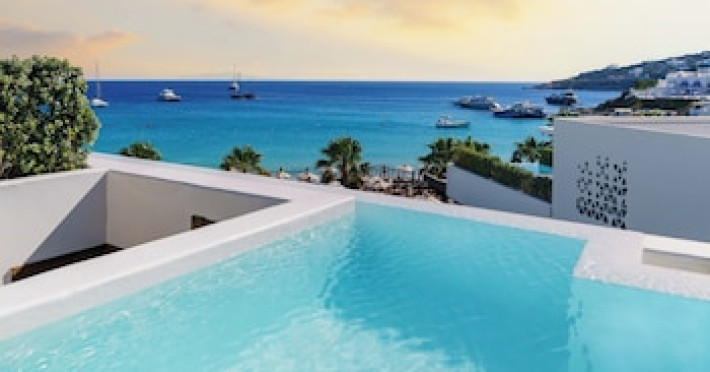The preferred airport for Mykonos Dove Beachfront Hotel is Mykonos Island National Airport (JMK).