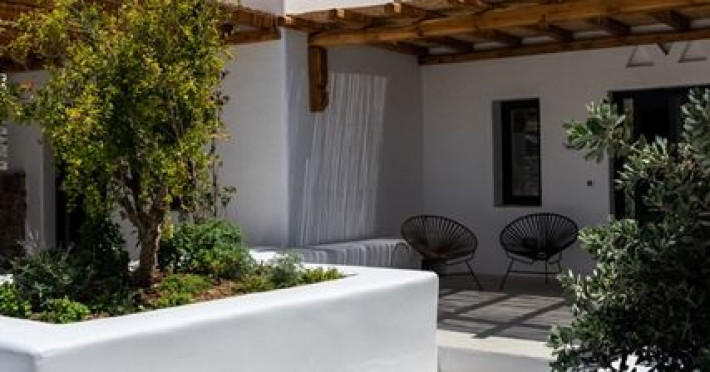 This hotel warmly welcomes guests in Mykonos Town.
