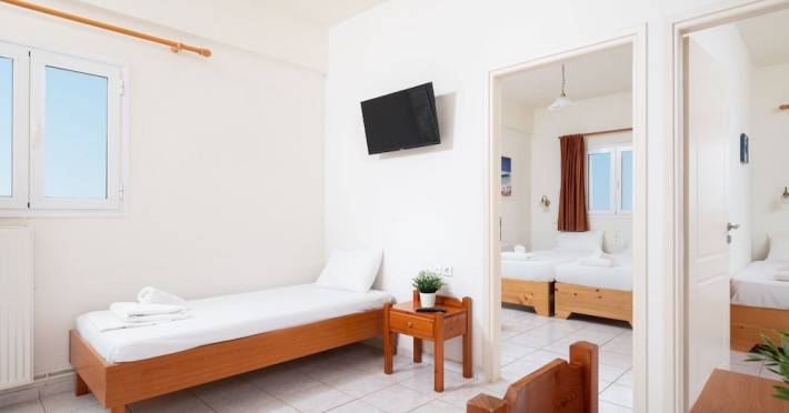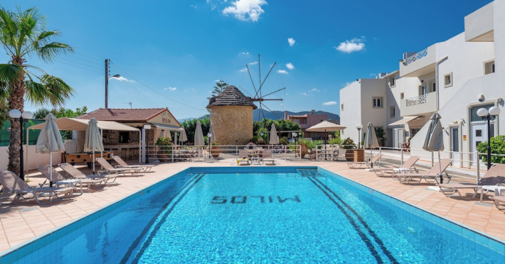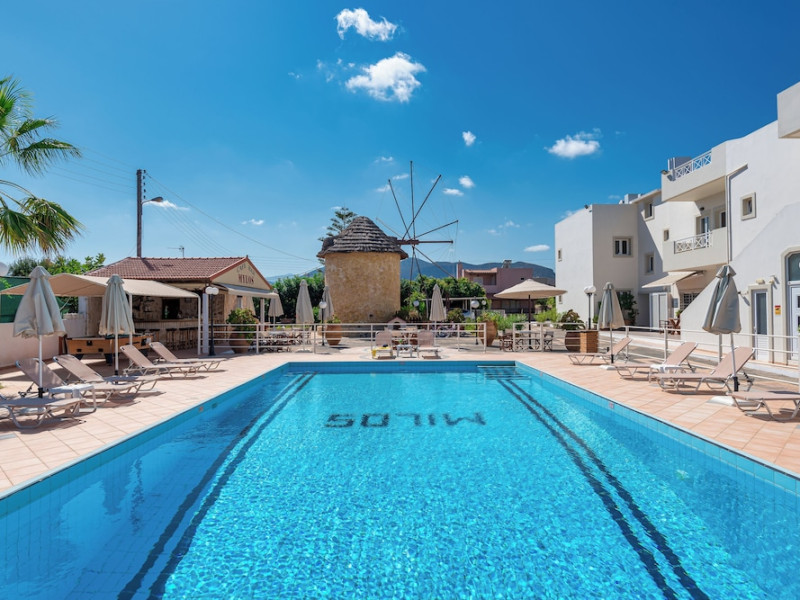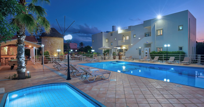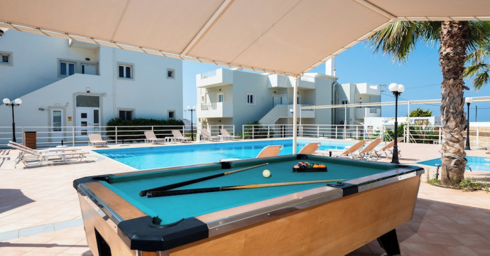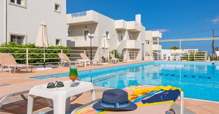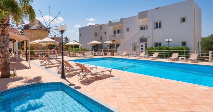 Facilities and services include car parking, air conditioning (extra charge), cafe, wireless internet access, ironing facilities, and swimming pool.Rooms feature air conditioning (extra charge), coffee/tea maker, cots on request, hairdryer, safe (extra charge), and wireless internet access.Address: Pondou Street, Anissaras, Crete 70014, Greece