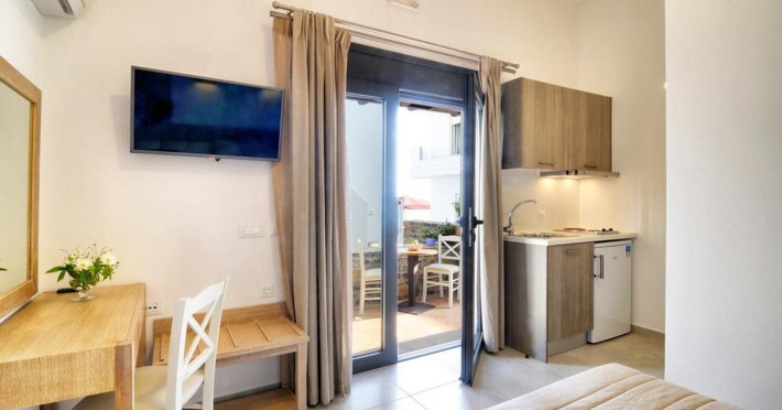 Facilities and services include wireless Internet access and 24 hour reception.Studios feature wireless Internet access, air conditioning, T.V, fridge, kitchenette, safe, hairdryer and bathroom.Family Maisonette also feature balcony/terrace with sea view.please note there are duplex rooms available at this propertyCleaning: two time per week.Address: Myrtos, Ierapetra, 72200 Crete, Greece.