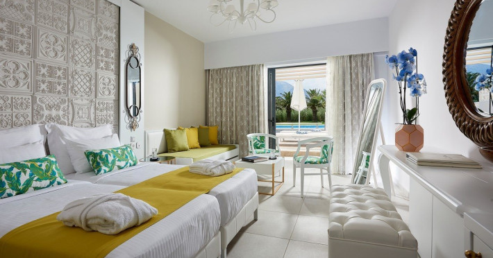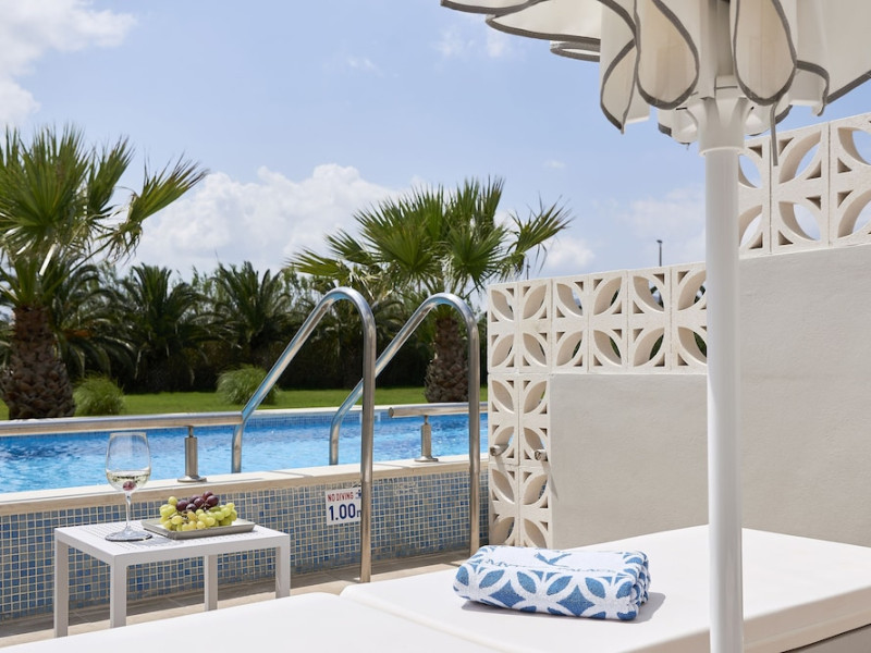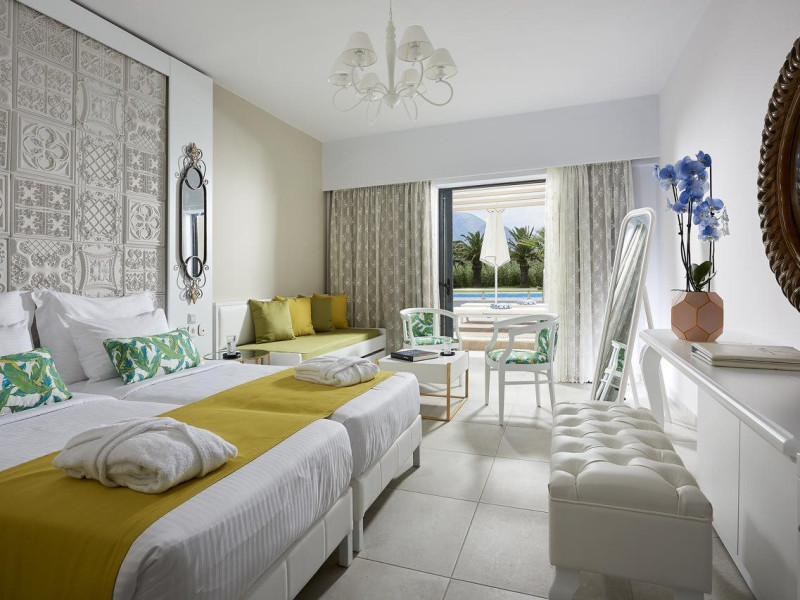 Facilities and services include Wi-Fi connection, pool, restaurant, bar and shop(s).Rooms feature air conditioning, telephone, minibar, safety deposit box, satellite TV, private bathroom, shower, hairdryer, coffee/tea facilities and Wi-Fi.**Please note that some of the above facilities may be closed due to weather / seasonal conditions.**In case of choosing the option of "all inclusive":The All Inclusive-concept includes all meals (breakfast, lunch, dinner and snacks) and mealtime drinks such as soft drinks, beer, wine, water and alcoholic drinks, all of local brands.Drinks are served from morning until late evening (approx until 22.00 -24.00 hrs).Opening times vary between different hotels.In certain hotels the activities program is also included.Address: Kavros Apokoronou, Georgioupolis, Chania, Crete, 73007, Greece