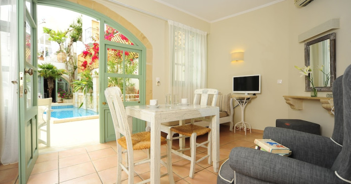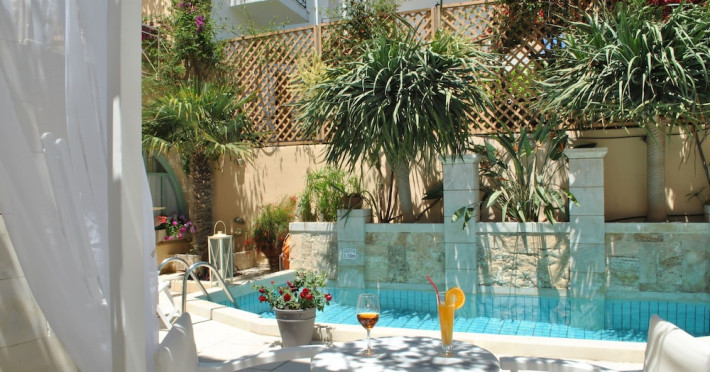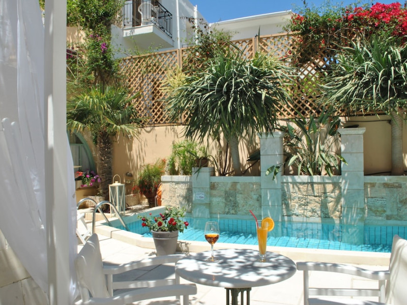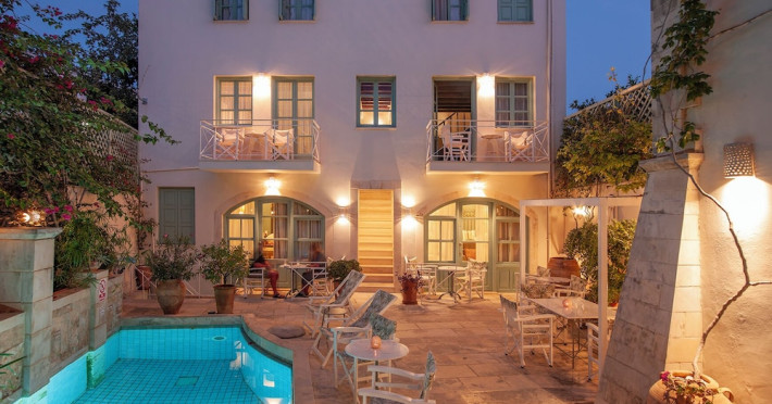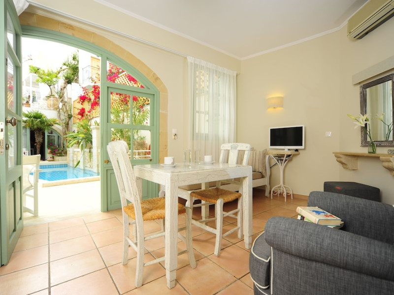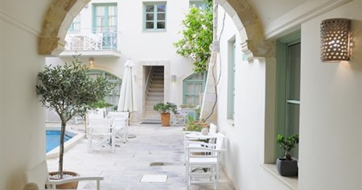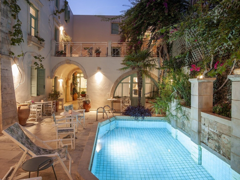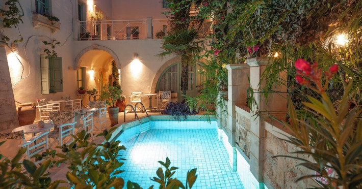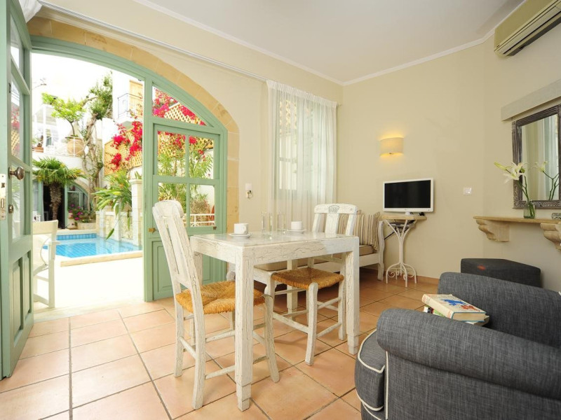 Facilities and services include airport shuttle available (with extra charge), safety deposit box, air conditioning, housekeeping, laundry service ( extra charge), multilingual staff and outdoor swimming pool.Room features balcony, air conditioning, bathrobe, bathroom facilities, desk, hairdryer, fridge, towels, ironing, cable/satellite TV, shower, slippers, Wi-Fi and safe box.Address: 12 Karaoli Square 74100 Rethymnon Crete Greece