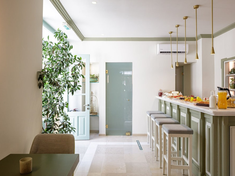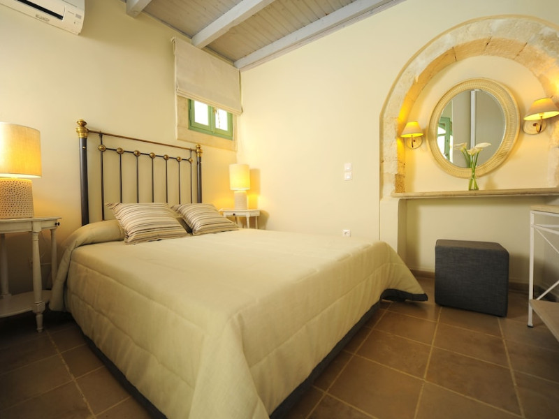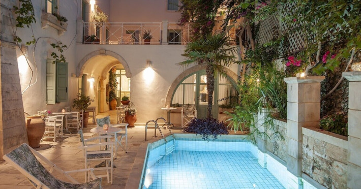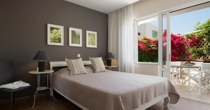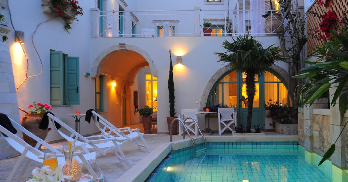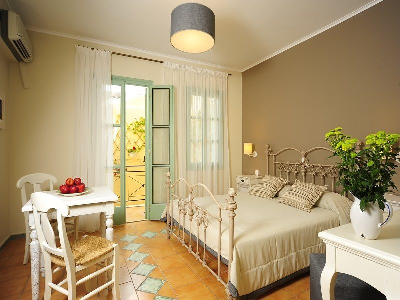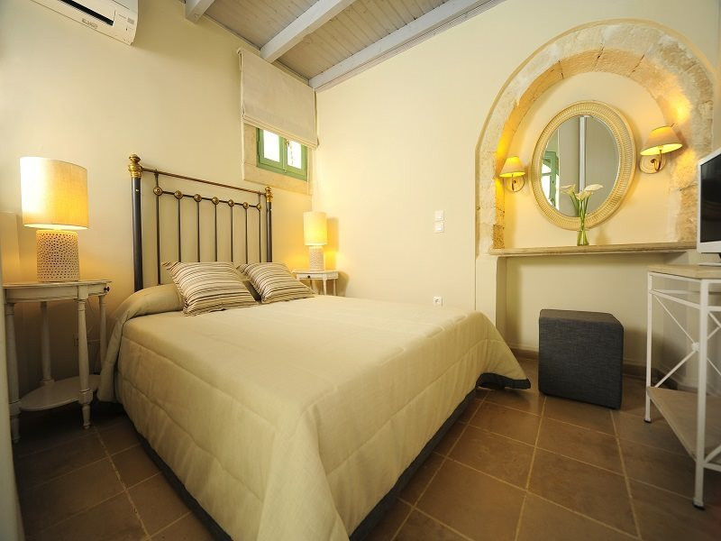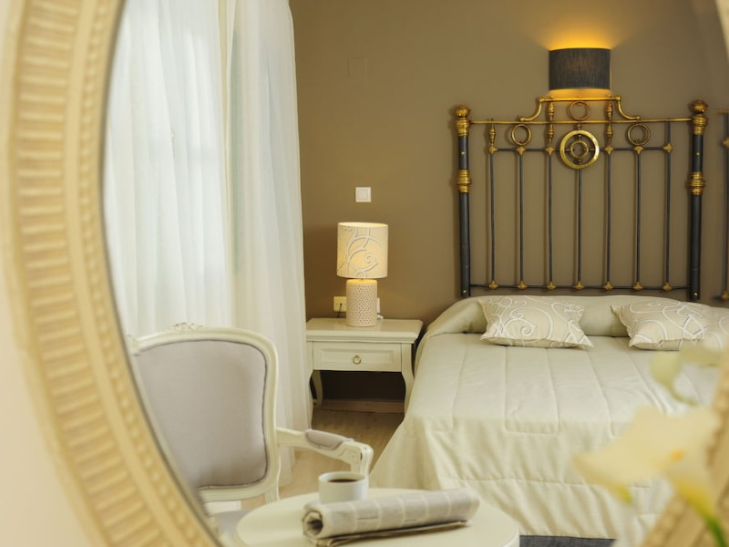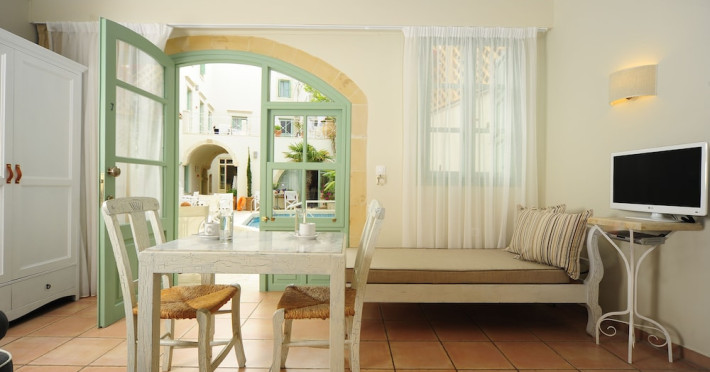 Facilities and services include airport shuttle available (with extra charge), safety deposit box, air conditioning, housekeeping, laundry service ( extra charge), multilingual staff and outdoor swimming pool.Room features balcony, air conditioning, bathrobe, bathroom facilities, desk, hairdryer, fridge, towels, ironing, cable/satellite TV, shower, slippers, Wi-Fi and safe box.Address: 12 Karaoli Square 74100 Rethymnon Crete Greece