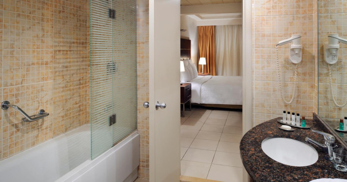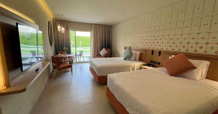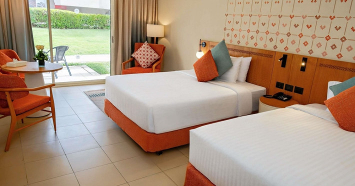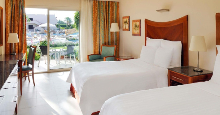 Located in Naama Bay, Naama Bay Promenade Beach Resort Managed By Accor offers accommodations with access to a private beach. It features two outdoor swimming pools, a spa offering massages, body treatments, and facials, and a gym, sauna, and steam room. Guests can enjoy complimentary wireless internet access in public areas, concierge services, and gift shops/newsstands. All-inclusive rates are available, including meals and beverages at onsite dining establishments; charges may apply for some options. Dining options include a restaurant, coffee shop/cafe, and a bar/lounge. The air-conditioned rooms feature minibars, satellite LCD televisions, and bathrooms with bathtubs, hair dryers, and bathrobes. Conveniences include phones, safes, and complimentary bottled water. Complimentary wired internet access, a business center, and complimentary newspapers are available in the lobby. A roundtrip airport shuttle is available for a surcharge, and free self-parking is available onsite. Sharm El Sheikh International Airport is 10 km away. The Naama Bay Promenade Beach Resort is a hotel.