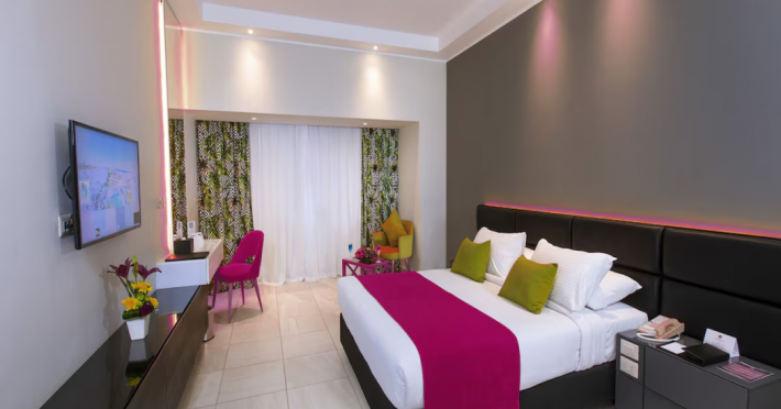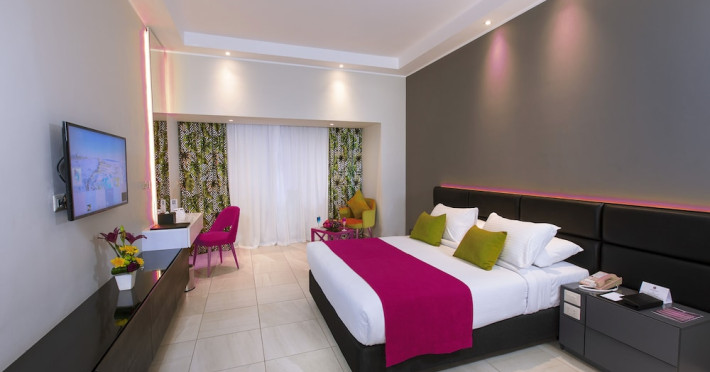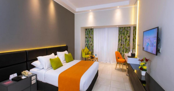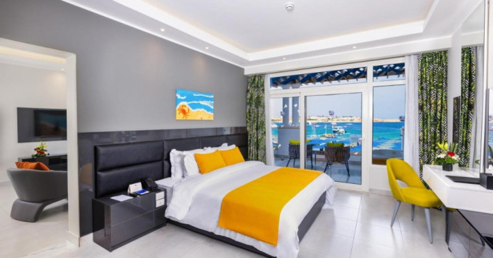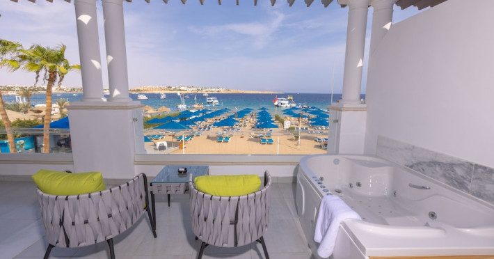 Located in the heart of Naama Bay, Sharm El Sheikh, Naama Bay Suites & Spa offers beachfront accommodation with views of the Red Sea. This 5-star hotel is steps from Naama Bay Beach and features a restaurant, bar, shared lounge, and terrace. Guests can enjoy a spa and wellness center with a sauna, hot tub, and outdoor pool. Complimentary WiFi is available. The air-conditioned rooms include a seating area, a flat-screen TV with satellite channels, a safety deposit box, a desk, and a private bathroom with a bath, hairdryer, and free toiletries. Some rooms offer sea views and a balcony. A selection of breakfast options are available. The hotel offers recreational amenities such as an outdoor pool and a private beach. Snorkeling is a popular activity in the area. The hotel provides a 24-hour front desk with multilingual staff (Arabic, English, Italian and Russian), concierge services, luggage storage, and free airport shuttle service. Nearby points of interest include Ras Mohammed National Park. Sharm el-Sheikh International Airport is located nearby. The Naama Bay Suites & Spa - Sharm (Adults ONLY + 18) is a hotel.
