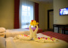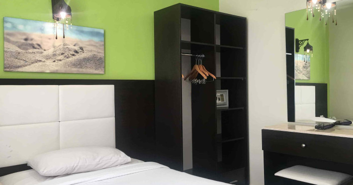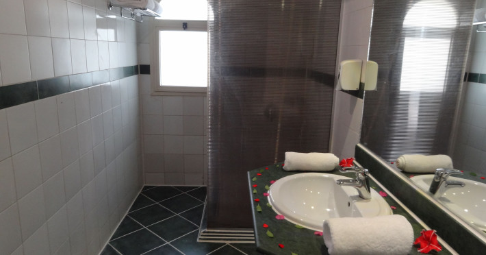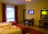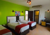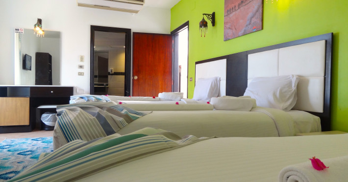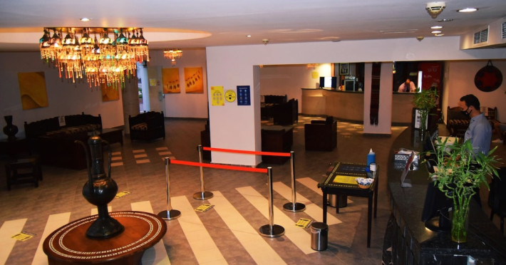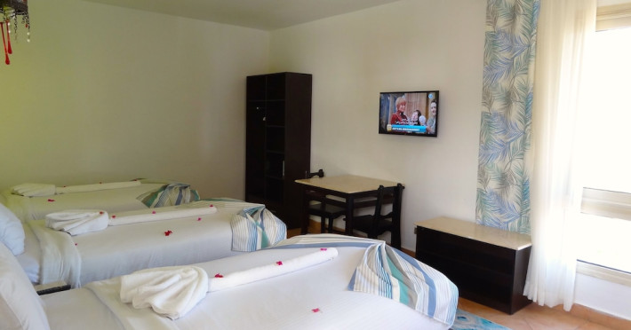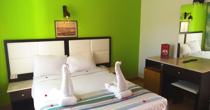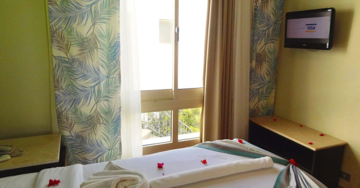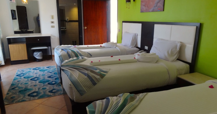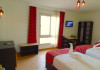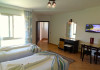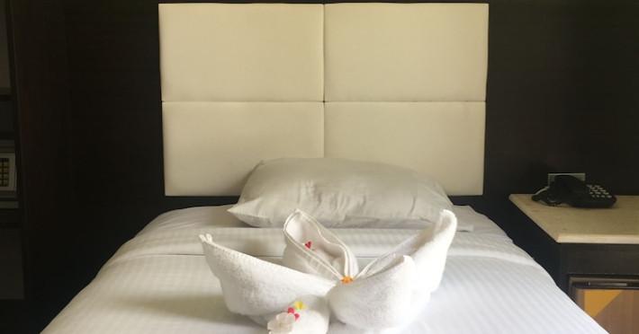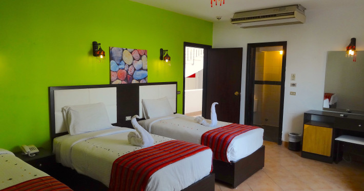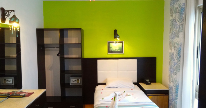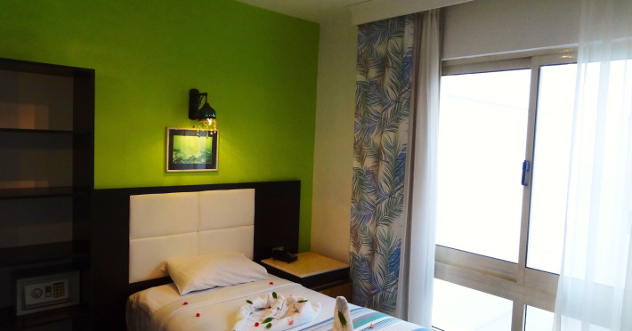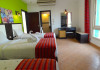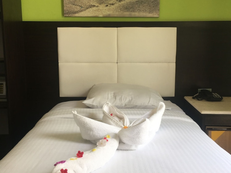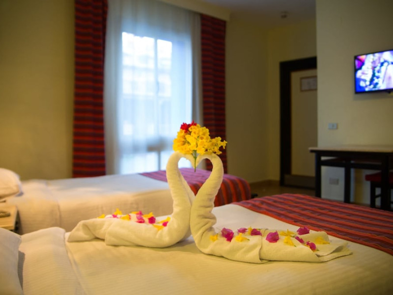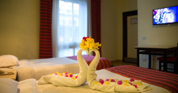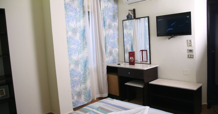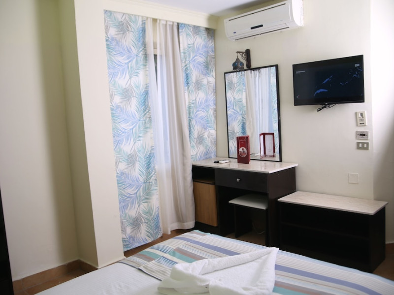 The hotel has 114 air-conditioned rooms, each equipped with a refrigerator, flat-screen television with satellite channels, a phone, and a safe. Private bathrooms include a shower, complimentary toiletries, and a hair dryer. Housekeeping is provided daily.