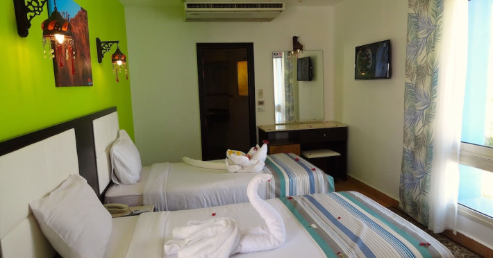 Additional amenities include a 24-hour front desk, multilingual staff, luggage storage, concierge services, dry cleaning/laundry services, and tour/ticket assistance. An airport shuttle is available for a surcharge, and free self-parking is available on-site. Guests can also enjoy a communal living room, an arcade/game room, a sauna, massage services, body treatments, and facials. A fitness center is also available. The Naama Blue Hotel is a hotel. Located in Sharm El Sheikh area.