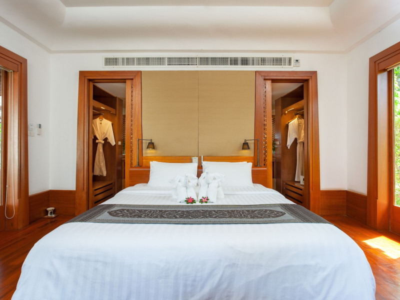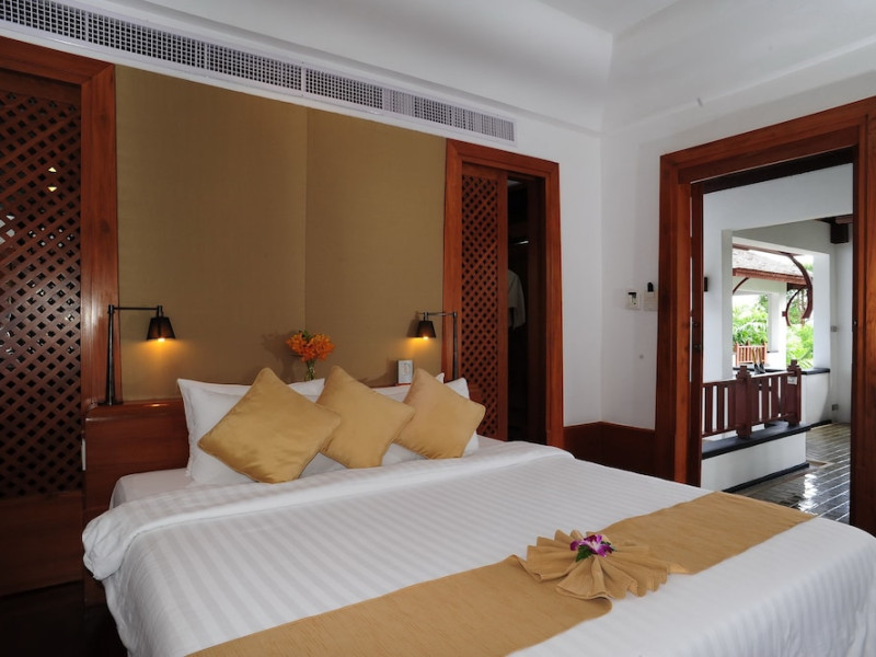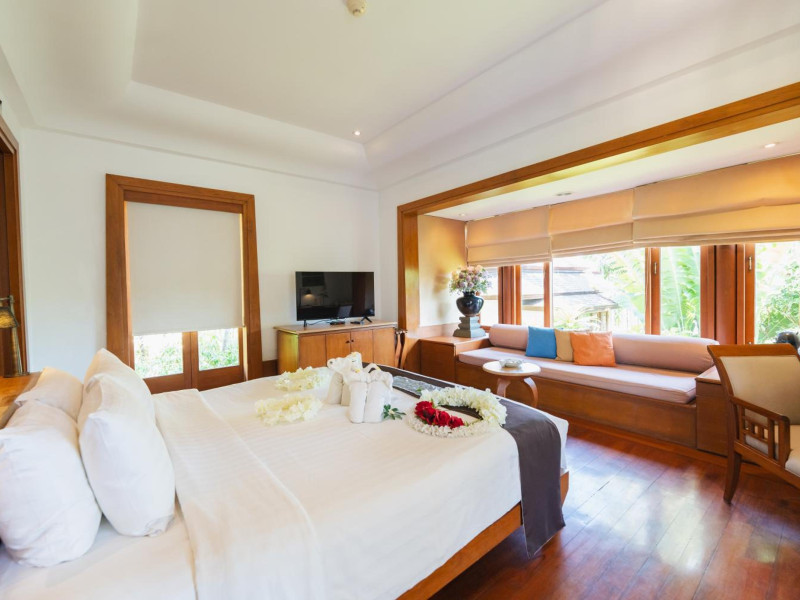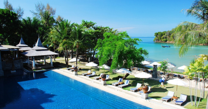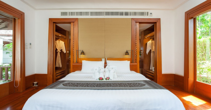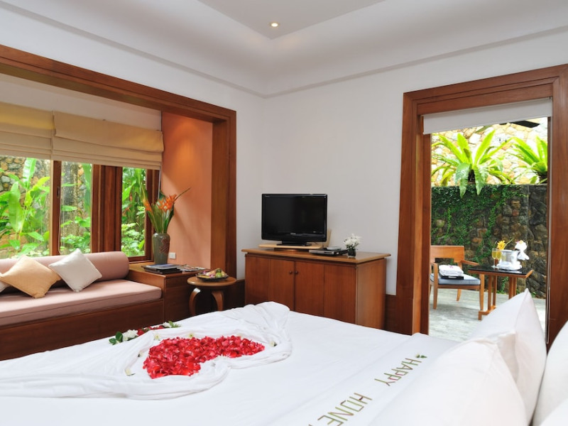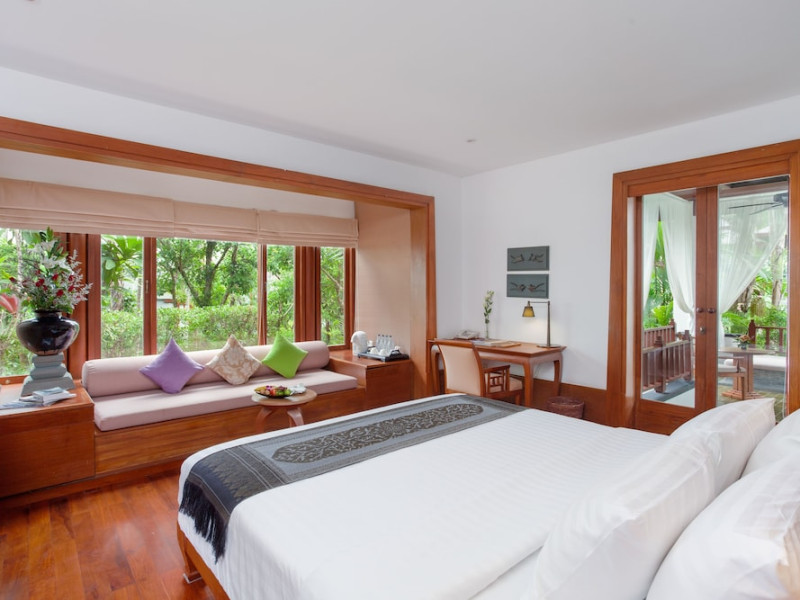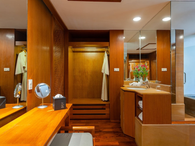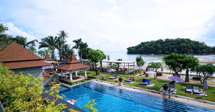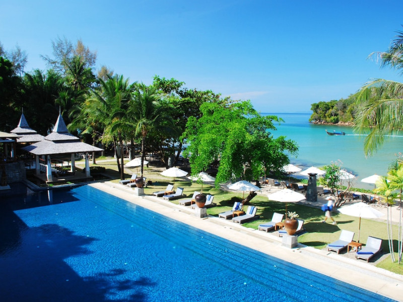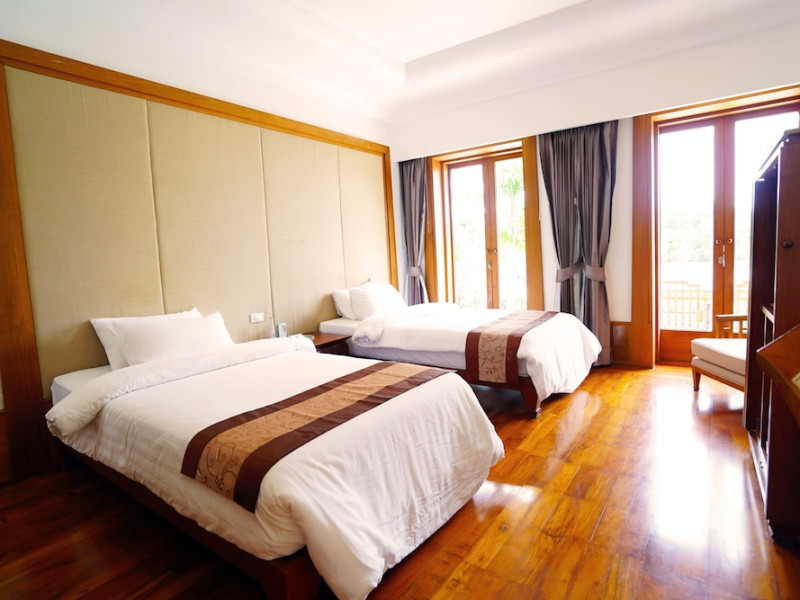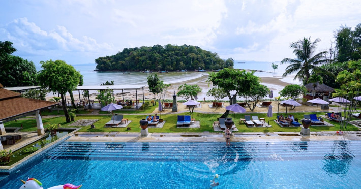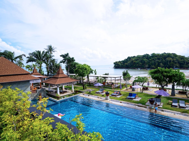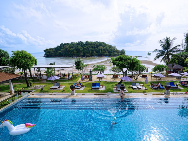 Nakamanda Resort & Spa, nestled between Krabi and Klong Muang Beach, offers villas designed in a tropical Thai style amidst gardens. It is a 40-minute drive from Krabi International Airport. The resort features an outdoor pool, fitness center, spa with massage services, and a beachfront restaurant serving Thai and Western cuisine. Villas include air conditioning, complimentary Wi-Fi, a balcony or terrace, satellite TV, a coffee/tea maker, and a bathroom with a bathtub and separate shower. Additional amenities include a 24-hour front desk, concierge service, laundry facilities, room service, a bar, and complimentary parking. Airport shuttle service is available for a surcharge. Khlong Muang Beach is a short distance from the resort. The Nakamanda Resort And Spa is a Tourist hotel. The nightlife/restaurants are located in the hotel.