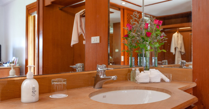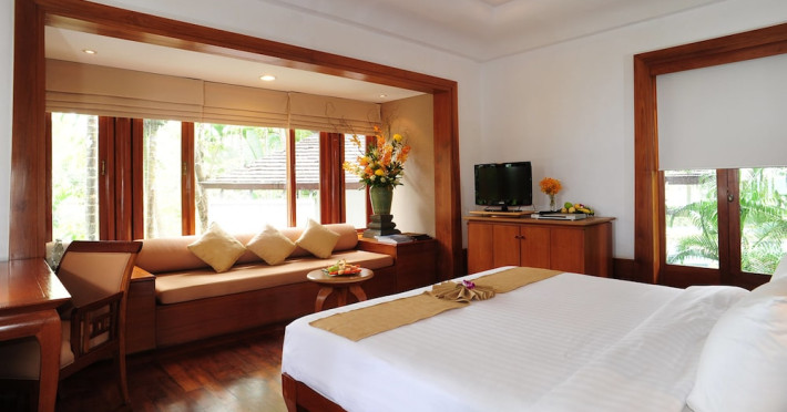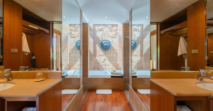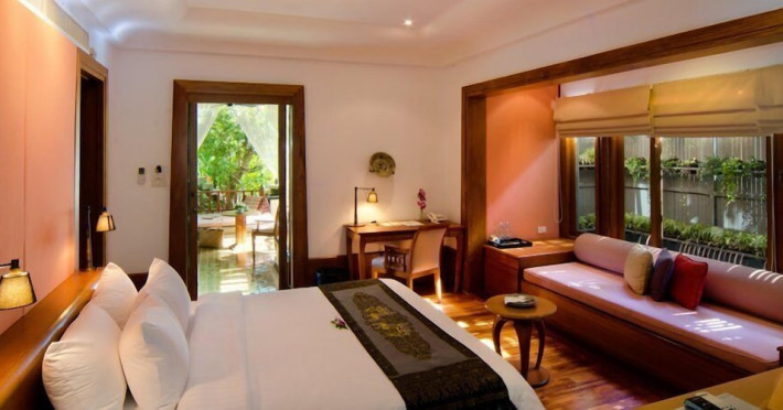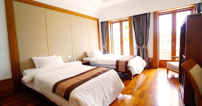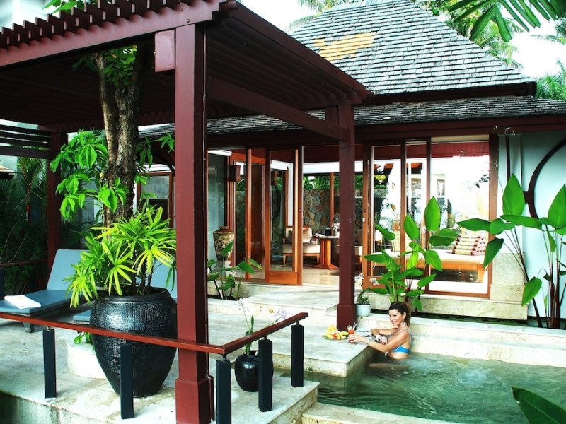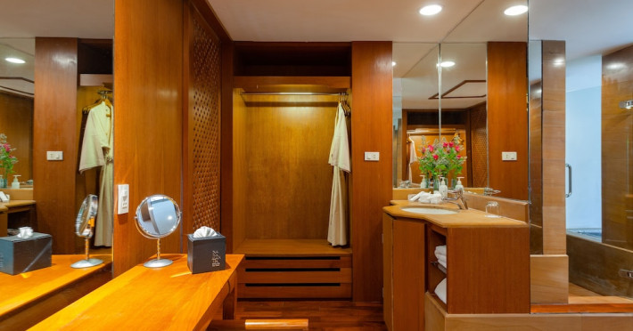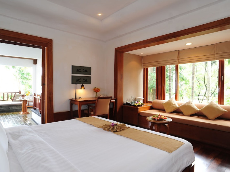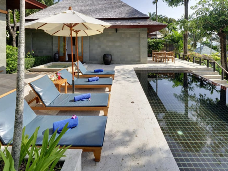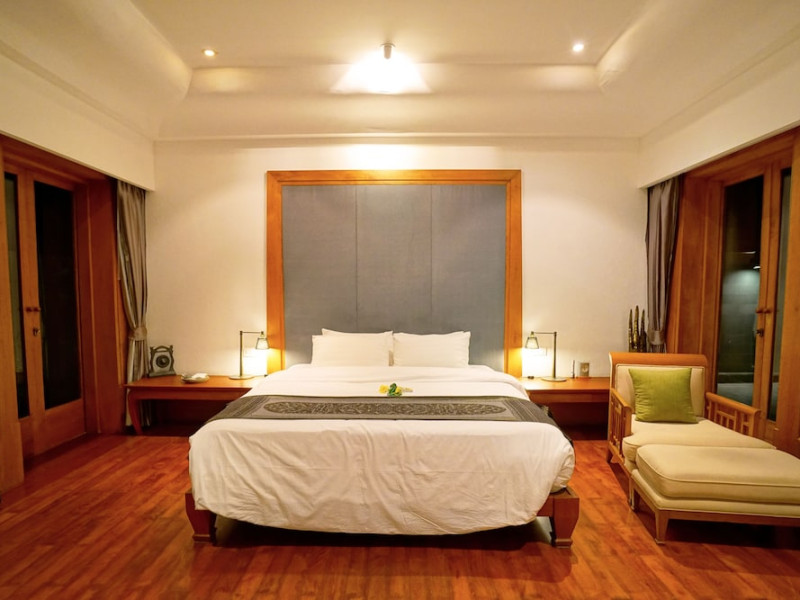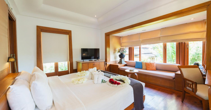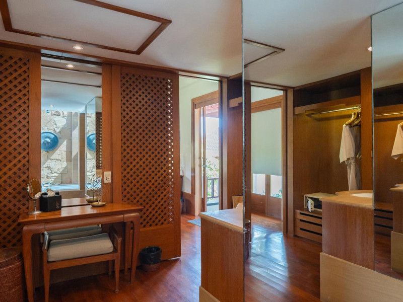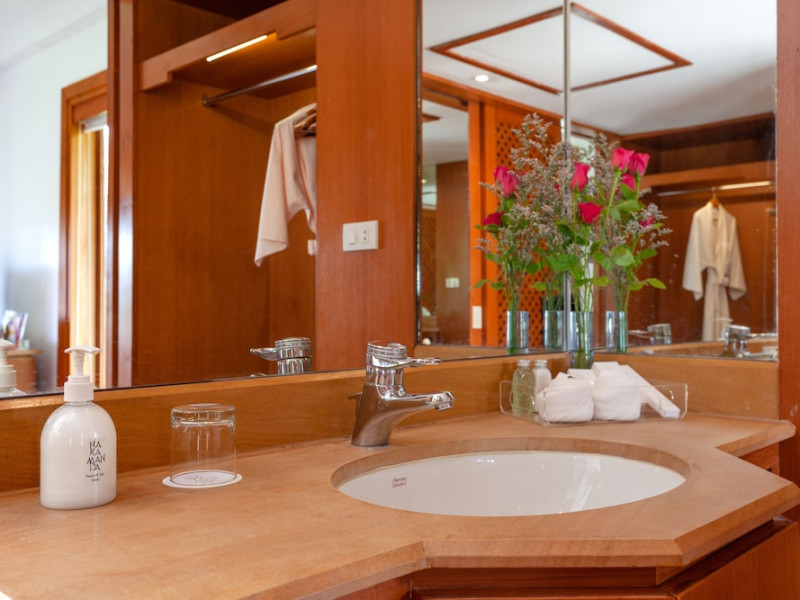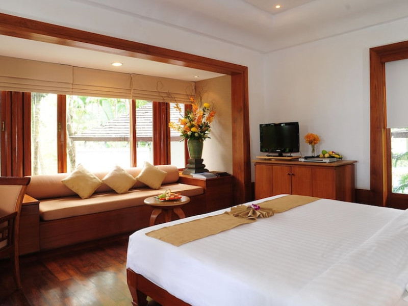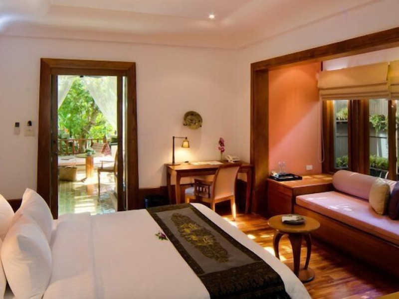 Nakamanda Resort & Spa, nestled between Krabi and Klong Muang Beach, offers villas designed in a tropical Thai style amidst gardens. It is a 40-minute drive from Krabi International Airport. The resort features an outdoor pool, fitness center, spa with massage services, and a beachfront restaurant serving Thai and Western cuisine. Villas include air conditioning, complimentary Wi-Fi, a balcony or terrace, satellite TV, a coffee/tea maker, and a bathroom with a bathtub and separate shower. Additional amenities include a 24-hour front desk, concierge service, laundry facilities, room service, a bar, and complimentary parking. Airport shuttle service is available for a surcharge. Khlong Muang Beach is a short distance from the resort. The Nakamanda Resort And Spa is a Tourist hotel. The nightlife/restaurants are located in the hotel.