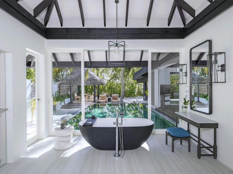 Naladhu Private Island Maldives, an exclusive retreat on the Indian Ocean, offers expansive villas and houses, each with a private pool overlooking the azure waters. The resort features a full-service spa with massages and body treatments, an outdoor pool, a steam room, a fitness center, complimentary Wi-Fi, concierge services, and gift shops. Dining options include The Living Room (one of four restaurants) serving international cuisine, 24-hour room service, and a coffee shop/cafe. A bar/lounge and poolside bar are also available. A complimentary cooked-to-order breakfast is served daily. Guestrooms include private plunge pools, LCD televisions, Frette Italian sheets, single sofa beds, private patios, and bathrooms with separate bathtubs and showers. Wired and wireless internet access, iPod docking stations, and satellite programming are provided. Nearby beaches include Dhigufinolhu, Bodu Hurraa, Gulhi, Biyadoo, Embudu, Rihiveli, Vadoo, Rannalhi, Laguna, Olhuveli, Kandooma, and Villingili Public Beach. Velana International Airport (MLE) is 4.2 km away; a roundtrip airport shuttle is available for a surcharge. The Naladhu Private Island Maldives is a Beach Resort, Boutique, Child Friendly, Colonial Style, Diving Resort, Eco Friendly, Full Service, Health Resort, Honeymoon, Spa Resort, Sports Resort, Tourist, Villa Resort hotel. The nightlife/restaurants are within walking distance from the hotel.