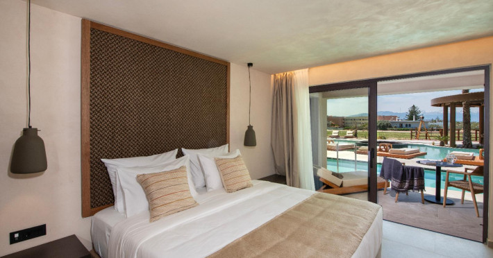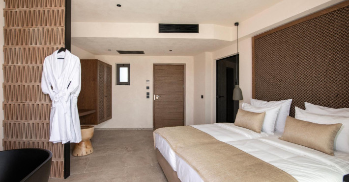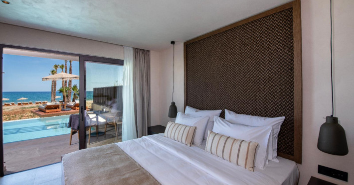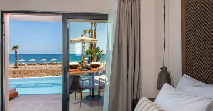 Perched right on the pristine shores of Adelianos Kampos of Rethymnon, a picturesque haven on Crete’s northwest coast, this adults-only beachfront resort offers a retreat of pure serenity. With just 66 rooms and Suites — all with mesmerizing views of the Aegean— Nalu Resort & Spa is designed for discerning travelers who crave intimacy, sophistication, and a deep sense of wonder.
