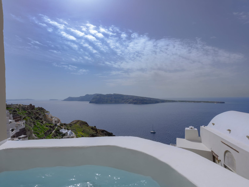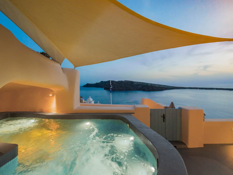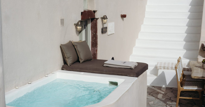 Discover the Timeless Harmony of Santorini’s Soulful Serenity Nano Oia Collection’s nine Cycladic villas, cradled in Oia’s heart, open to breathtaking caldera and volcano views. Each villa embodies the island’s timeless spirit, where nature and tradition meet in quiet harmony. Relax in your private hot tub and enjoy the volcano and sunset view.
