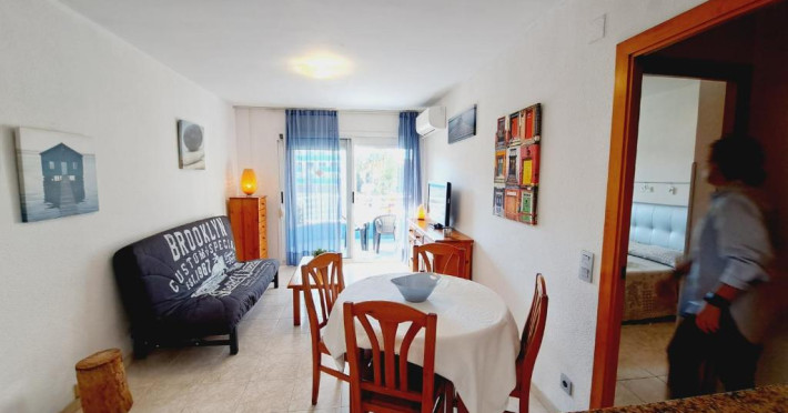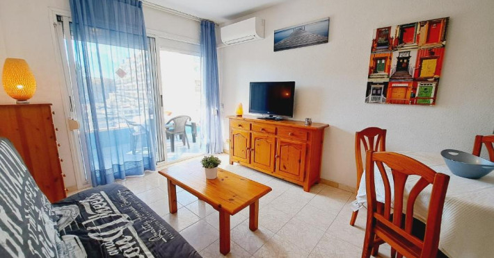 The apartments are located in Navarra street, an easily accessible street in an area surrounded by supermarkets, restaurants and all kinds of tourist-oriented shops. They are just a few meters from Plaza Europa, which connects the motorways towards Reus, Tarragona or Port Aventura and Vila-seca.They have a large swimming pool that includes a less deep area for children. It is surrounded by a large terrace for sunbathing in comfort.Levante beach is the nearest beach to these apartments, just five minutes walking away. If you access from Avenida del Principat d´Andorra, you will see the Light Fountain in Paseo Jaume I, a beautiful promenade lined with palm trees leading to the Marina of Salou.These are apartments for two to four people. They have aircondiotining, wash machine, flat screen television and fully equipped kitchen and bathroom with modern mobilier.