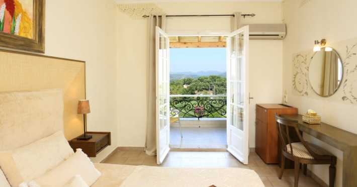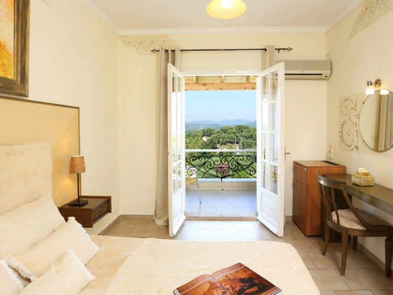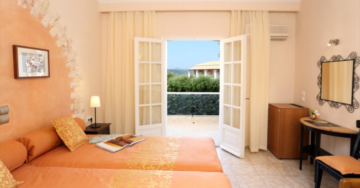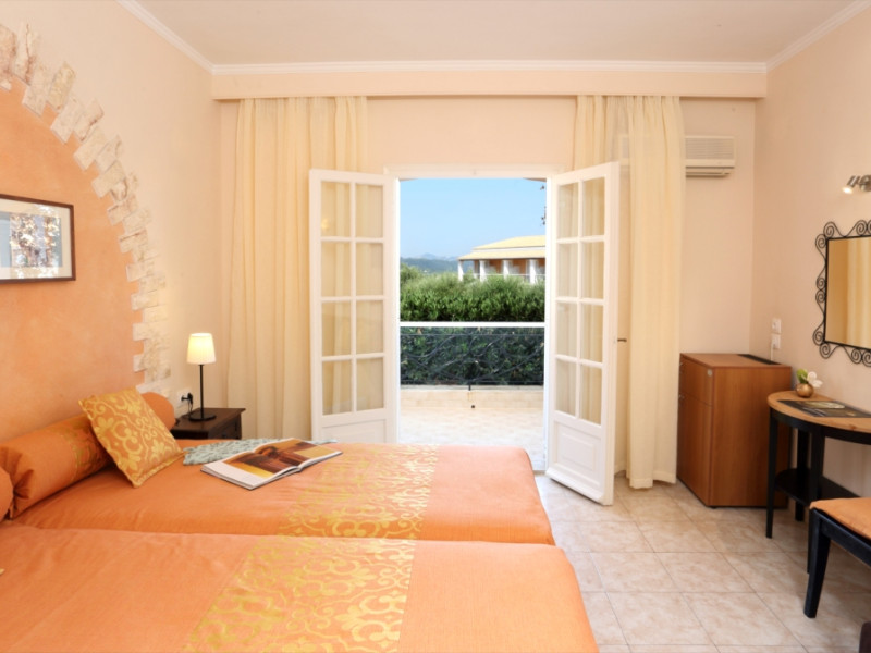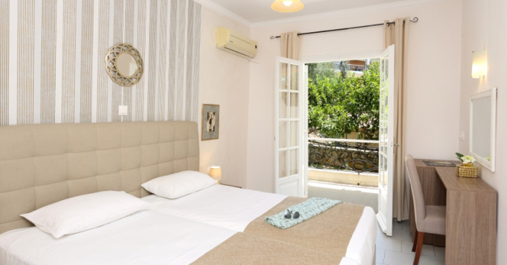 45 rooms with phone, WC, shower, A/C, fridge, TV, free Wi-Fi & private balcony with views to Kommeno Bay, Ionian Sea, Marina Bay.