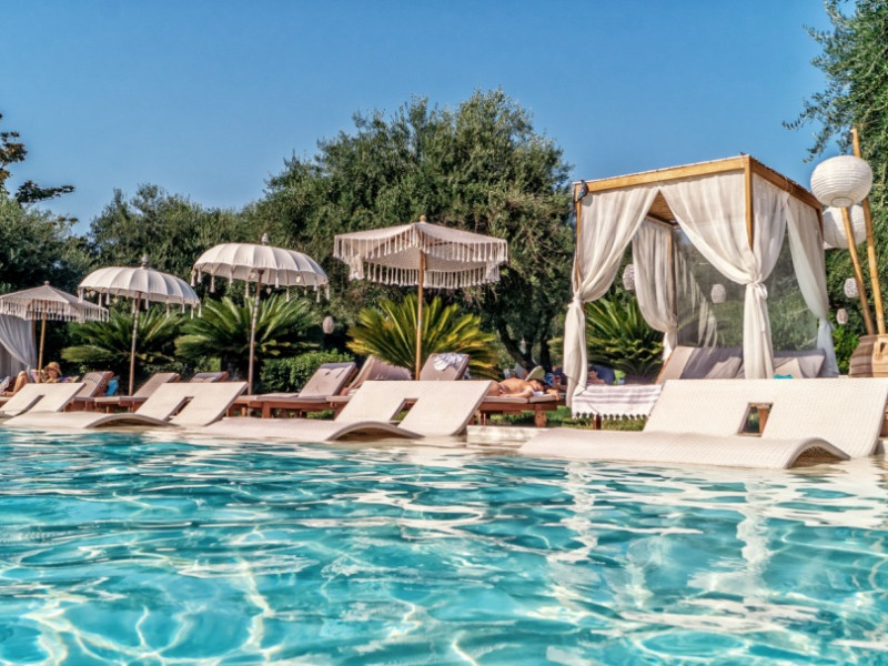 Large beds under the Pergola Pool Lounge are our guest's choice of relaxation as are our round beds with tents under the trees.