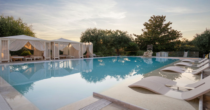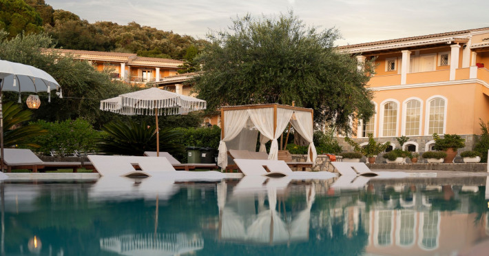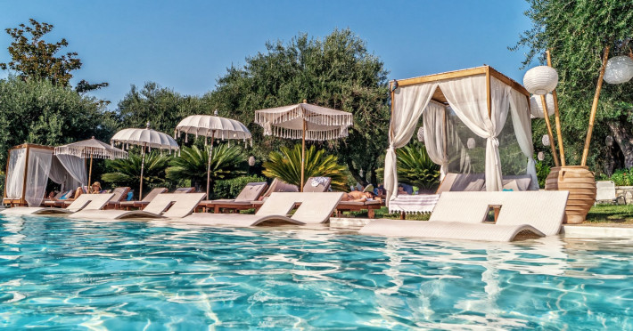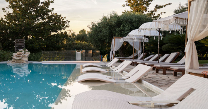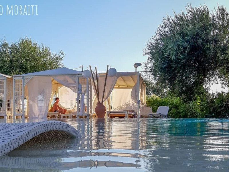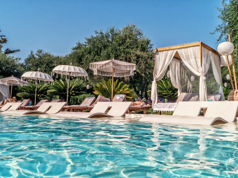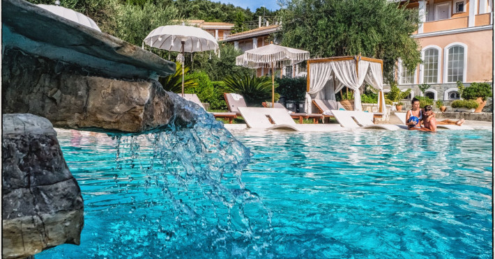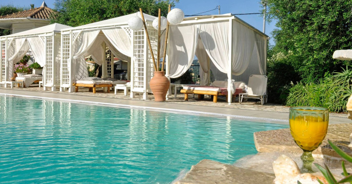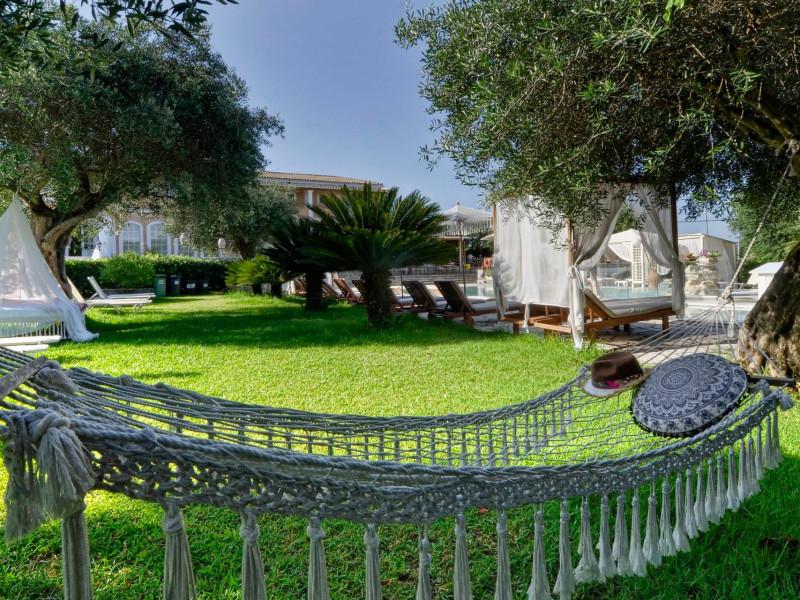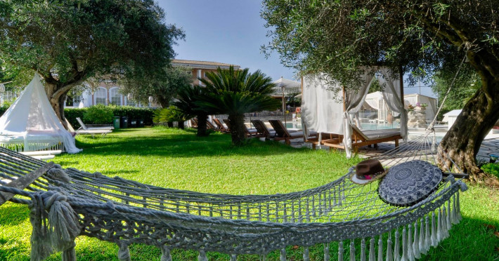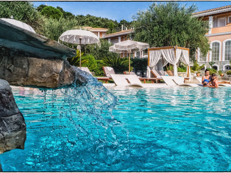 WELCOME TO NEFELI HOTELDesigned as a typical Corfiot Mansion and set on Kommeno Hill, about 12km north of Corfu town, Nefeli Hotel creates an air of relaxation and tranquility in a perfect setting surrounded by colorful gardens, palms, and wooded green groves.Nefeli Hotel has an outdoor pool with sun loungers and daybeds, surrounded by olive trees & tropical plants, and a pool bar where you can enjoy coffee, ice cream, and refreshing cocktails in the shade of large pergolas.Glorious views of the crystal-clear waters of the Ionian Sea and Corfiot landscape come as standard at Nefeli Hotel. Yet it is just a 20-minute drive to the mesmerizing historical center of Corfu Town and only 800 meters distance to the next sandy beach.The charming 45 rooms of Nefeli Hotel come all in an individual design and style, some of them including cinematic panoramic landscape views.