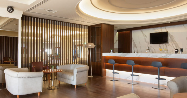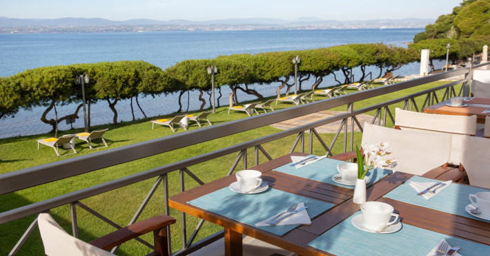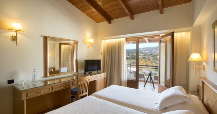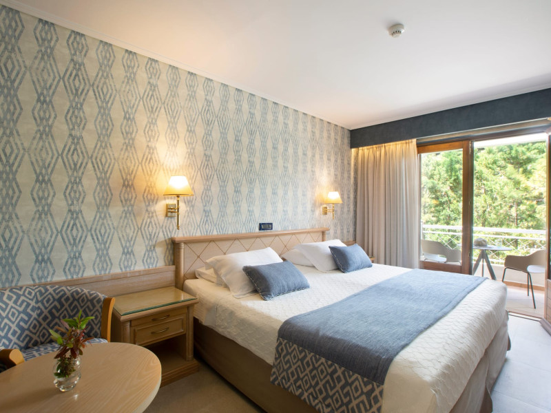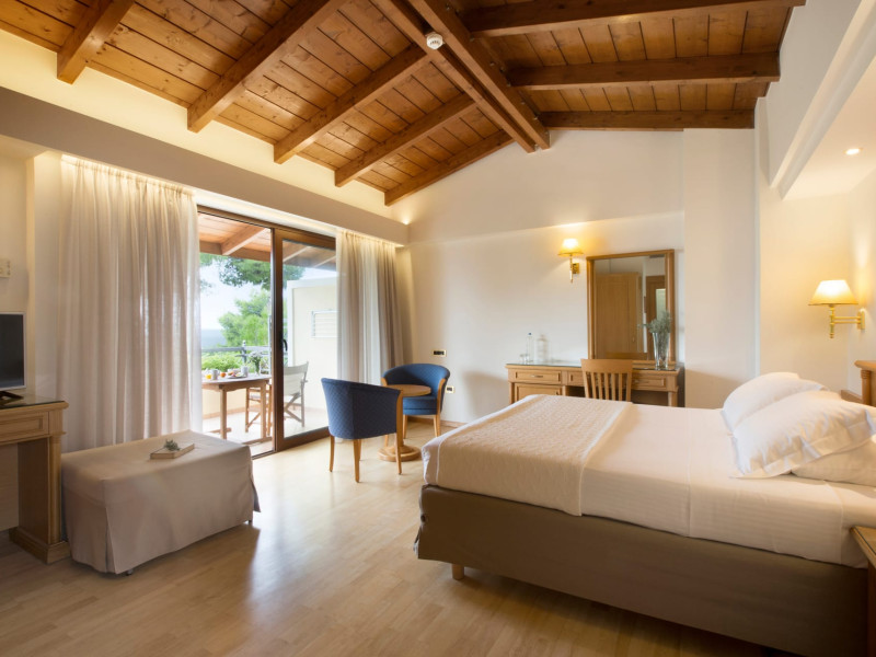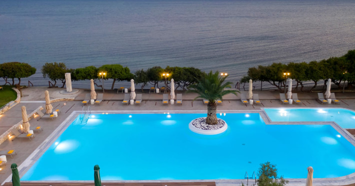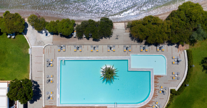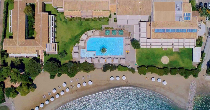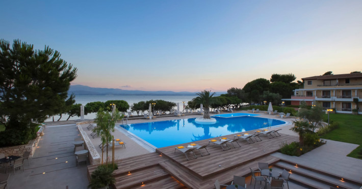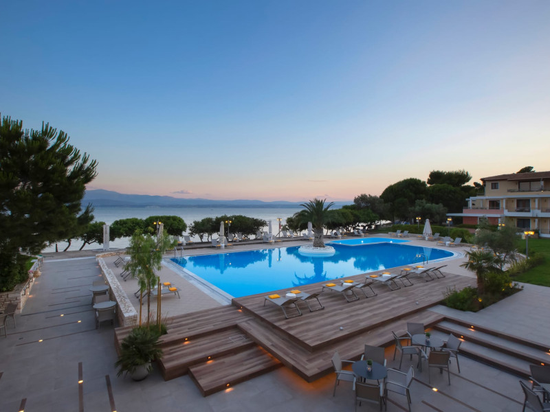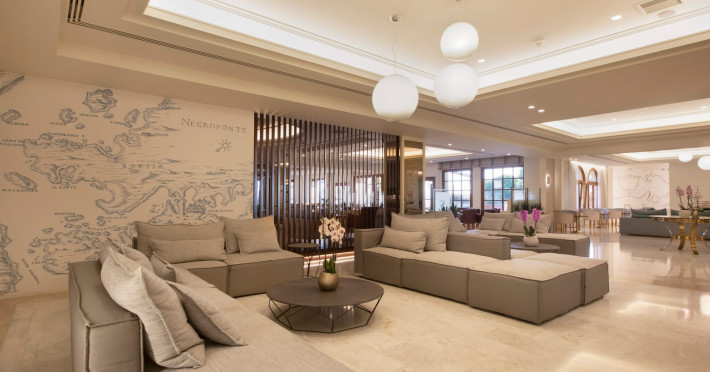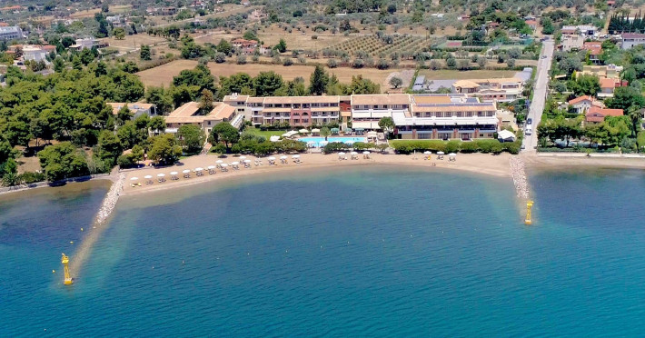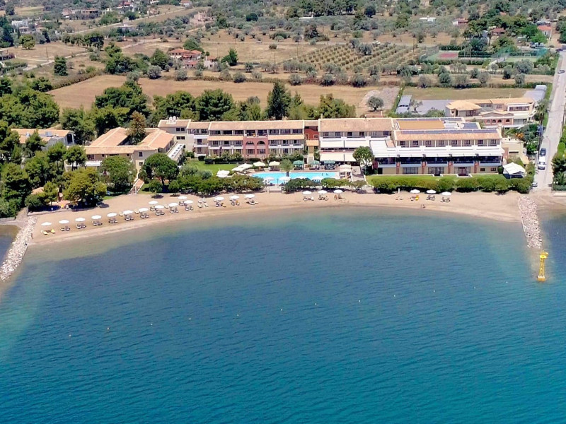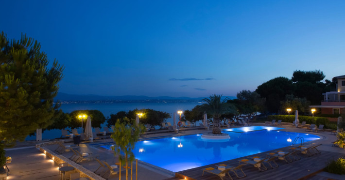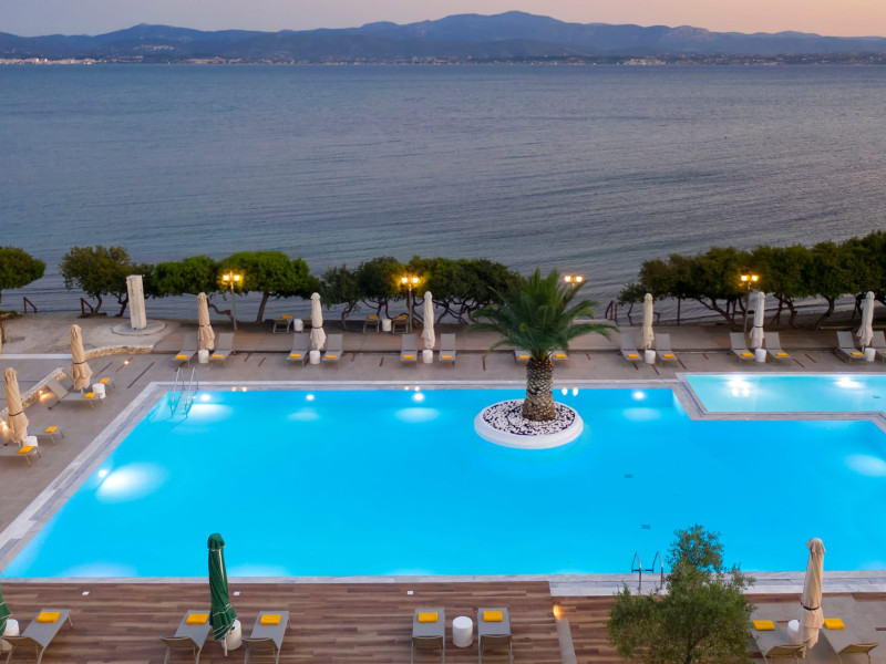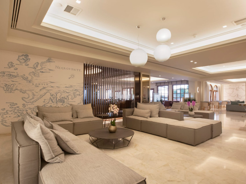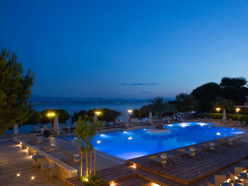 The luxurious Negroponte Resort Eretria consists of a complex of 5 buildings intercommunicating via inside corridors or sheltered passages. It extends over 11.000 sq.m. of an idyllic coastline spot in Eretria, 19 km east of Chalkis at a distance of 50 km.from Athens via Skala Oropou-Eretria ferry. The hotel complex is built around a large swimming pool, actually embracing the sea before it. ACCOMMODATION : Comfortable luxurious accommodation with excellent service in rooms of various types. SPORTS FACILITIES :Fitness room, Sauna, Indoor heated swimming pool, Massage, Jacuzzi, Basket ball amp; Tennis court, Mini football court. UTILITY SPACES : Large lobby overlooking the Euboean Gulf, Lobby, Restaurant with veranda overlooking the sea and the pool, Seminar, venues and multiple use halls, Open air swimming pool overlooking the sea, Jacuzzi, Childrens playground, Childrens swimming pool. Beach facilities, Business serveces