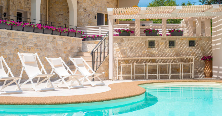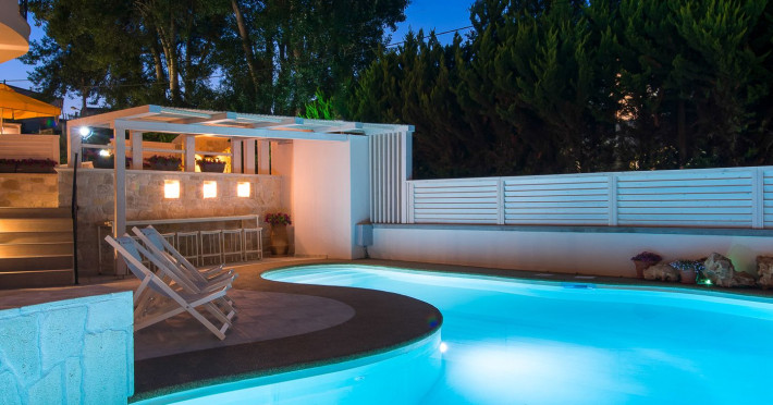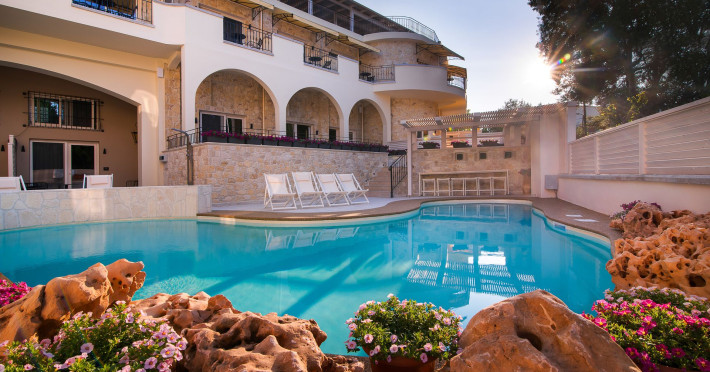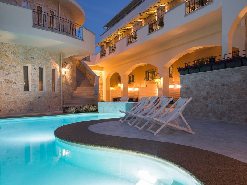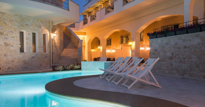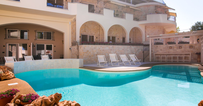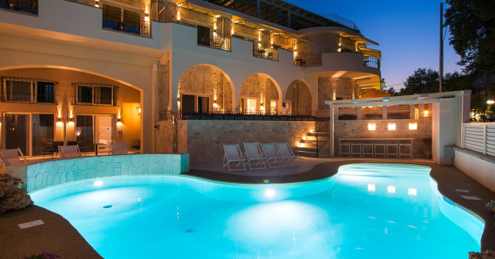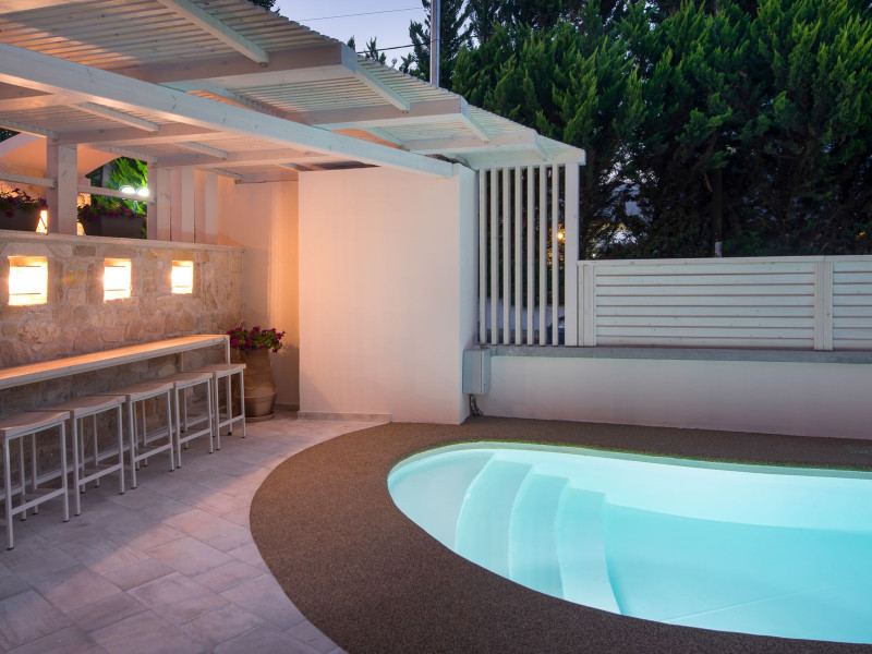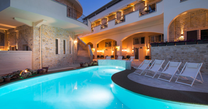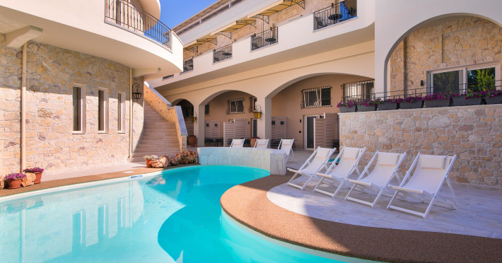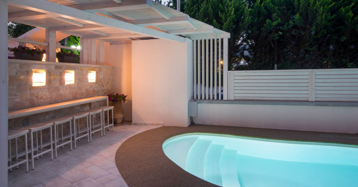 Neikos Luxury Suites, is located in Halkidiki in the peninsula of Kassandra.Ideally situated in the village of Hanioti 50 m. from the sea and 100 m. from the center, it is built with respect to traditional architecture.This new summer resort with its interiors inspired of natural beauty, with colors and brushes of the Mediterranean aesthetics, dispose rooms and suites fully equipped and unique atmospheric decoration. Its exteriors with the beautiful individually garden and balconies in combination with the exotic wavy pool, are idyllic summer destination.The facilities of NEIKOS Luxury Suites and the quality of customer services are completed by the luxurious residence in an ideal relaxation environment.
