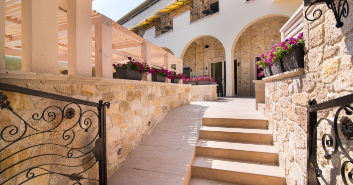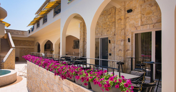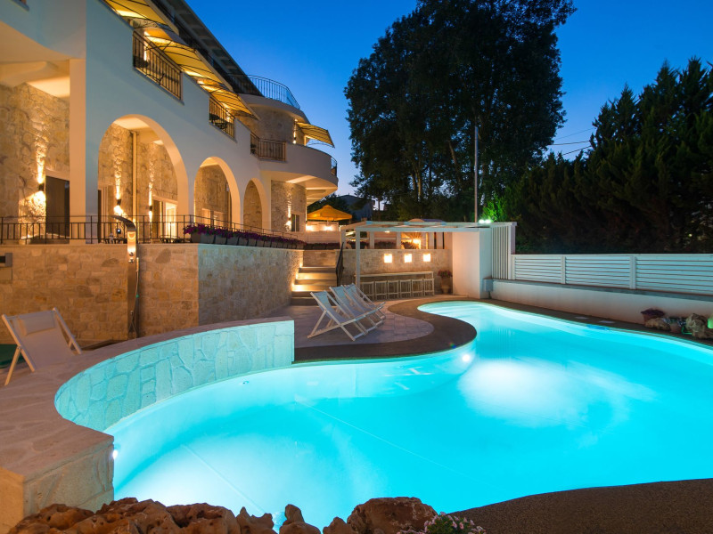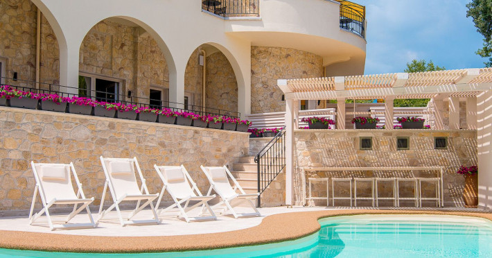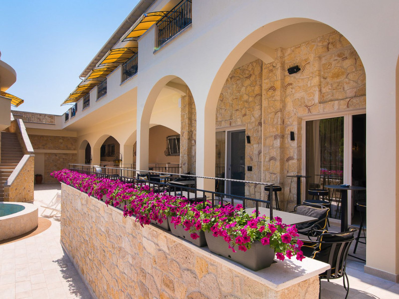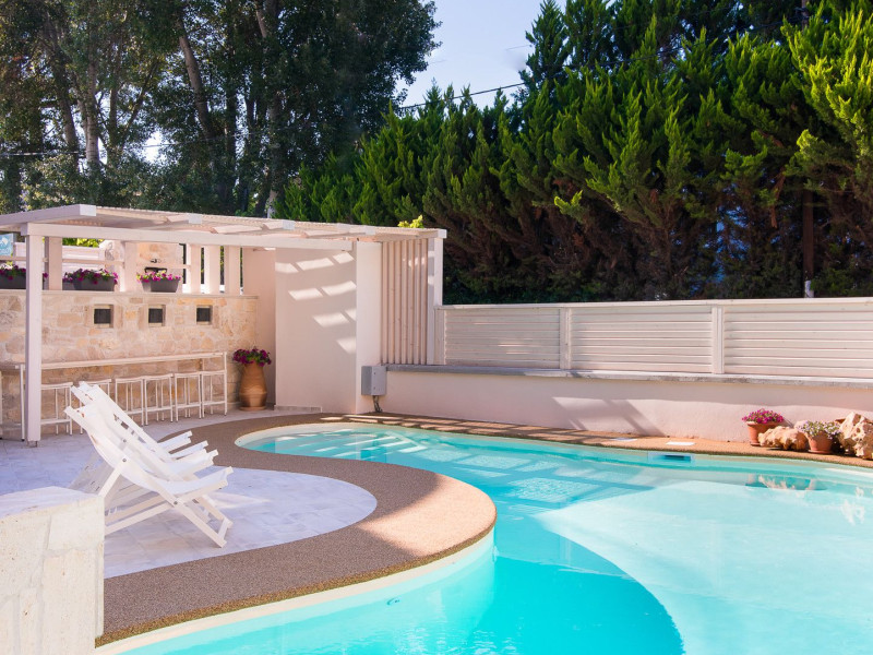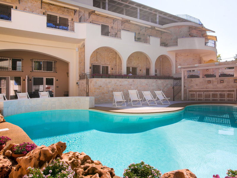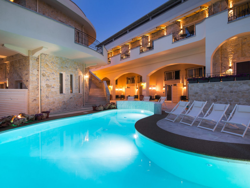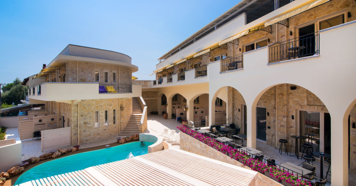 Neikos Luxury Suites, is located in Halkidiki in the peninsula of Kassandra.Ideally situated in the village of Hanioti 50 m. from the sea and 100 m. from the center, it is built with respect to traditional architecture.This new summer resort with its interiors inspired of natural beauty, with colors and brushes of the Mediterranean aesthetics, dispose rooms and suites fully equipped and unique atmospheric decoration. Its exteriors with the beautiful individually garden and balconies in combination with the exotic wavy pool, are idyllic summer destination.The facilities of NEIKOS Luxury Suites and the quality of customer services are completed by the luxurious residence in an ideal relaxation environment.