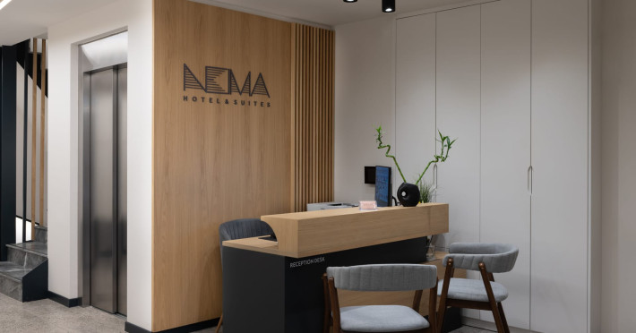 Nema Hotel amp; Suites captures the very essence of Athens city center. Housed in an emblematic building that used to operate as a textile trading company for over 70 years, Nema has infused all these elements of recent history and transformed them into a contemporary accommodation option. Named after the yarn that has characterized not only the industry that bloomed in the area but also Penelopeâs endless weaving in anticipation of her loved oneâs return, the thread encompasses a timeless connection between the past and the present. Within close walking distance, to Monastiraki and Ancient Agora, the Nema city boutique hotel consists of 13 brand-new rooms and suites that ooze with urban chic luxury. They have been designed in a manner that blends tradition and modernity, celebrating much sought-after sustainability in a central location. Guests are welcome to experience the ultimate Athenian stay, enjoying unmatched comfort through a wide array of modern facilities. The hospitality of the highest standards always with a smile guarantees idyllic lodging for travelers in Athens. In perfect alignment with the surroundings, Nema is part of the cityâs identity and carries on its long-lasting history. A full-scale mural of Joe Williamsâ Penelope has been crafted by KEZ and adorns the side wall of the building, reflecting the fundamental contribution of weaving in the wider region. Relish authentic flavors at NemaâsSpritzeria â Cicchetteriaor enjoy a drink at the cute roof garden overlooking the city from above, taking in that precious Athenian vibe. Book your stay in Nema and be part of this wonderful myth unfolding before your eyes. Welcome!