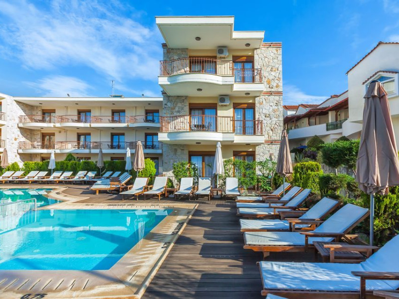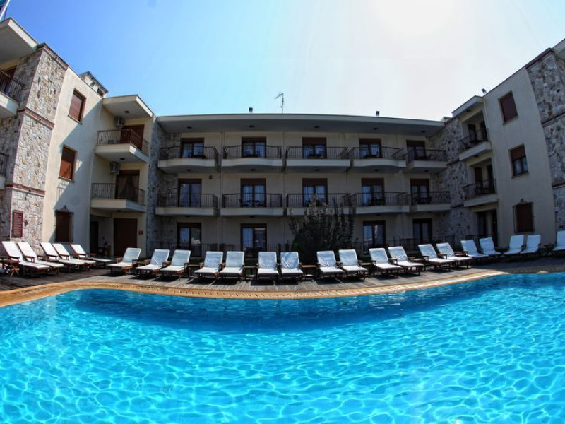 Nereides offers self-catered accommodation in the beach resort Hanioti, in Chalkidiki. Its outdoor pool has a hydro massage area and a sun-lounger terrace. There is also a children's pool.Located along the Kassandra Peninsula, Nereides is just 500 meters from the Blue Flag Hanioti Beach. The center of Hanioti is at a distance of 250 meters.Rooms at the Nereides Hotel are spacious and functional, and each has a bathroom, kitchenette and a balcony or terrace with views of the swimming pool and garden. Standard amenities include a TV, microwave and toaster.Breakfast at Nereides is served at the pool bar, and snacks are available throughout the day by the poolside. A range of cocktails and other beverages can also be ordered.The area combines the green from the mountains and the blue from the clean waters of the Toroneos Gulf. Plenty of shops, water sports, as well as an endless choice of nightlife are at easy reach.