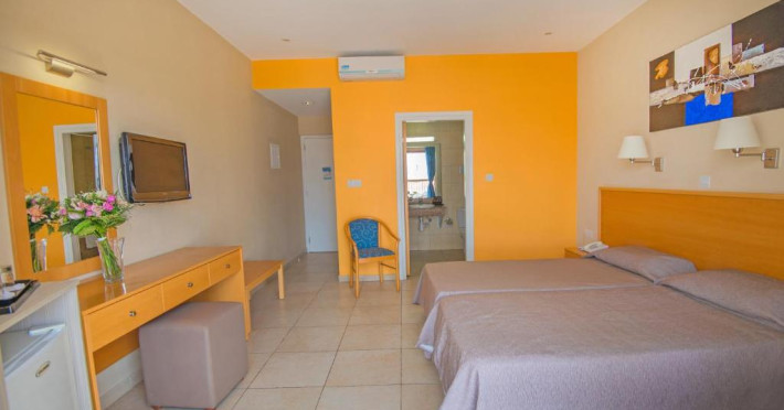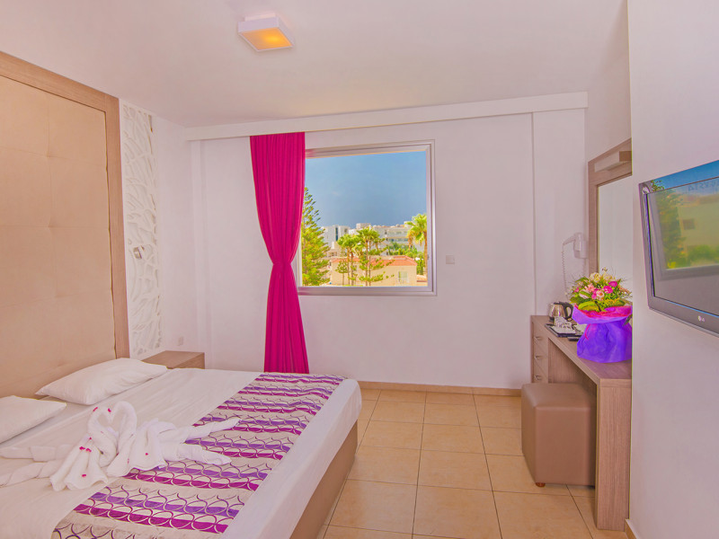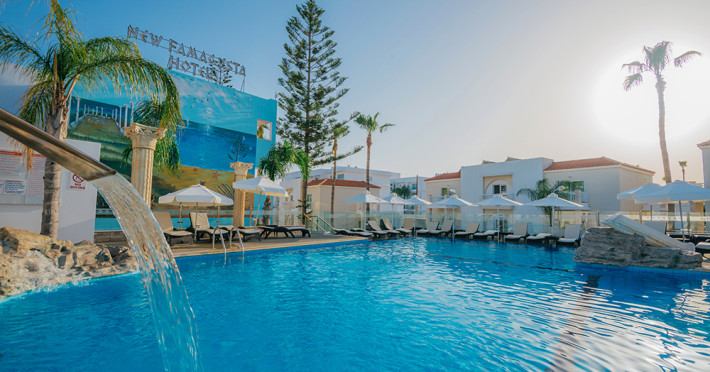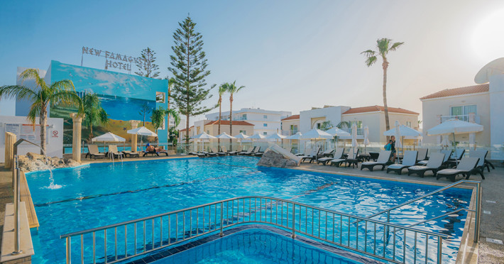 The New Famagusta Hotel is situated in the heart of Ayia Napa - Cyprus. Experience all that Ayia Napa has to offer from one of our 181 Wi-Fi enabled, fully air conditioned renovated spacious guest rooms and suites. We have three buildings named after the historical districts of Famagusta in one conveniently located central site with both sea and inland views. Delight in our hotel's sleek, contemporary design, Crystal clear large swimming pool, beautifully complemented with a state of the art gym, sauna and indoor swimming pool. Or visit the luxurious Rose Spa health and beauty centre with top to toe treatments available from a relaxing massage to full body waxing. Feel free to explore Cyprus’ most popular town with the New Famagusta Hotel less than 500 meters from Limanaki Beach and the Ayia Napa marina surrounded by some of Cyprus’s best seafood restaurant’s. Or just five minutes’ walk away from Ayia Napa’s world famous strip with over 80 bars and clubs perfect for hen and stag parties. Yet this prime located hotel is away from the hustle and bustle of the strip so you can enjoy a peaceful night’s sleep, making it the ideal location for private getaways, family trips and group events.