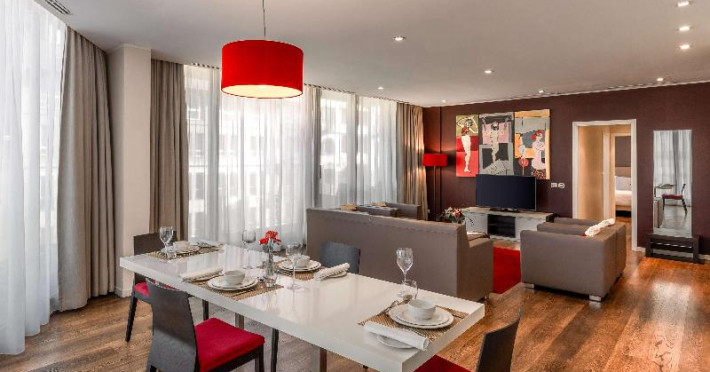 The apartment complex has 3 suites and 138 apartments, which are located on 6 storeys and are reachable by lift. Guests are warmly welcomed by multilingual staff (English, German, French) at the 24-hour reception desk in the lobby. Check-in/check-out service is available round the clock. Amenities include a cloakroom, baggage storage service, safe and cash machine. Wireless internet access allows guests to stay connected while on holiday. The tour desk offers assistance with booking excursions. The complex has a range of facilities for guests with disabilities. Wheelchair-accessible facilities are available. Everyday necessities can be purchased at the supermarket. A garden provides extra space for rest and relaxation in the open air. Additional facilities include a TV room. Guests arriving by car can park their vehicles in the garage or in the car park. Further services and facilities include a 24-hour security service, a babysitting service, a childcare service, medical assistance, a transfer service, room service, a laundry service, a coin-operated laundry and a hotel shuttle bus. A bicycle hire service provides all the necessary equipment for exploring the surrounding area. Complimentary newspapers are available. A fax machine is available for guests business needs.