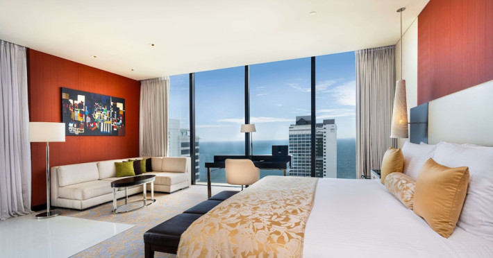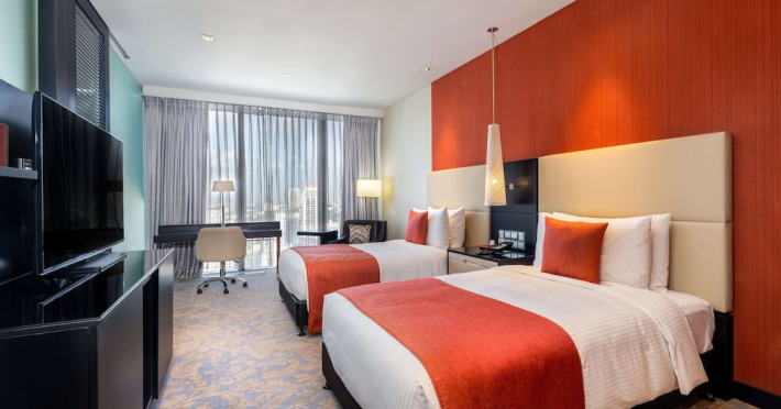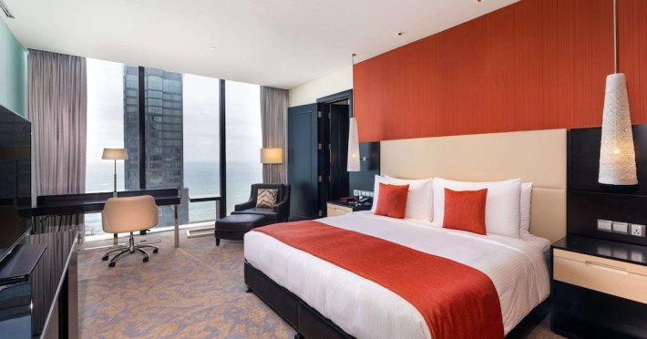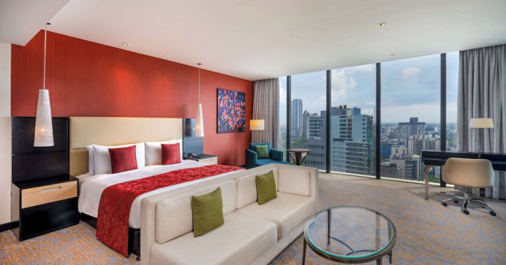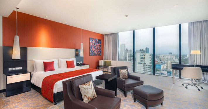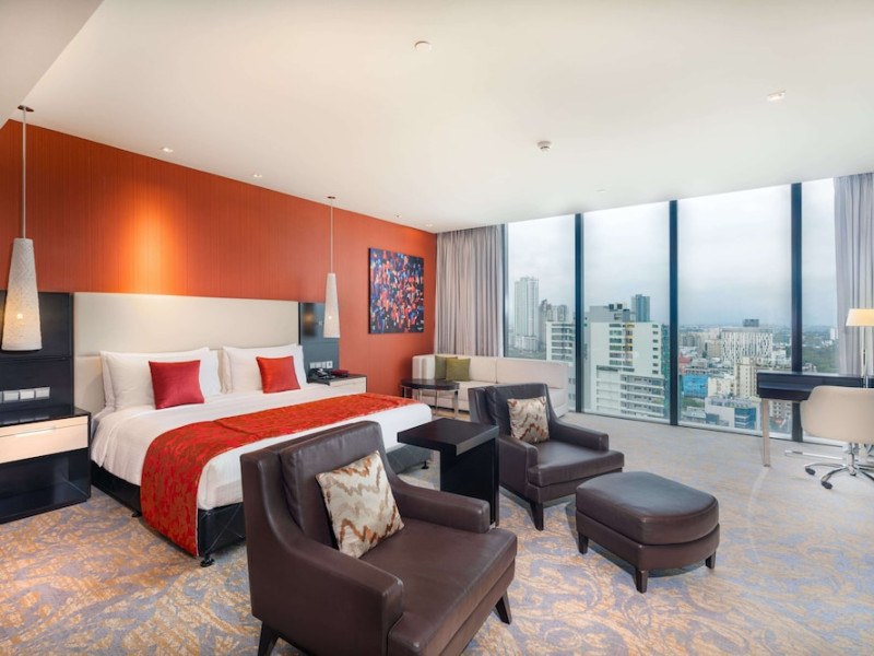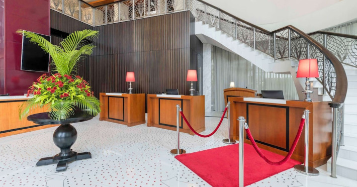 Movenpick Hotel Colombo, located in the central business and shopping district off Galle Road, features a restaurant, bar, and complimentary WiFi throughout the property. Guests can enjoy multiple restaurants offering international cuisine, as well as a coffee shop/cafe, and poolside bar. The hotel boasts an outdoor pool, sun terrace, health club, and a full-service spa offering massages, body treatments, and facials. Guests have access to a 24-hour front desk, 24-hour room service, a 24-hour business center, and concierge services. The air-conditioned rooms offer a flat-screen TV with cable channels, and private bathrooms with complimentary toiletries. Some rooms feature sea or city views. Free valet parking is available onsite. Bandaranaike International Airport is approximately 36 km away. The NH Collection Colombo is a hotel.
