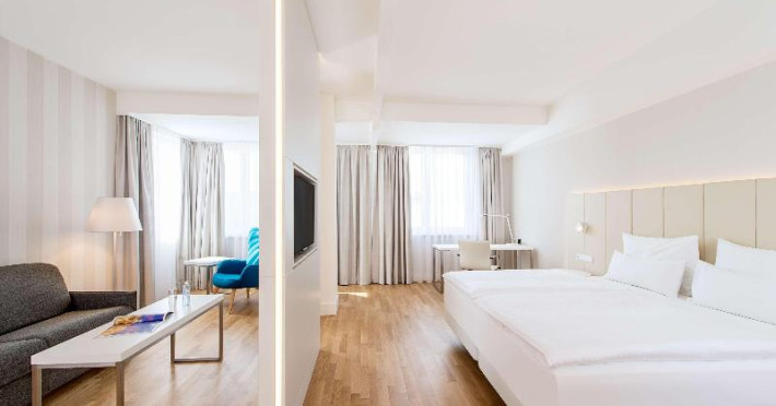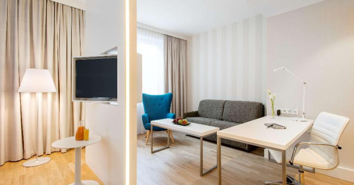 73 suites and 73 double rooms are located on 7 storeys and can be reached by lift. Multilingual staff (English, German, French) at the reception are happy to assist guests at the reception desk round the clock. Check-in and check-out are available 24 hours a day. Amenities include a baggage storage service and a safe. Wireless internet access (for a fee) is provided in public areas. The tour desk offers assistance with booking excursions. The hotel has a range of facilities for guests with disabilities. The hotel has wheelchair-accessible facilities. Everyday necessities can be purchased at the supermarket. A garden provides extra space for rest and relaxation in the open air. Guests arriving by car can park their vehicles in the garage (for a fee) or in the car park (for a fee). Other services include a babysitting service, a childcare service, a car hire service, medical assistance, a transfer service, room service (for a fee), an alarm call service, a laundry service, a coin-operated laundry and a hotel shuttle bus. Cyclists can make use of the bicycle storage area and hire service. Complimentary newspapers are available. A fax machine is available for guests' business needs.