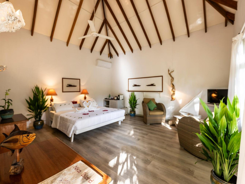 Nika Island Resort & Spa, a 5-star beachfront resort in North Ari Atoll, Maldives, is located approximately 74 kilometers from Malé International Airport. The resort offers a range of accommodations, from rooms and suites to exclusive villas. Enjoy various water sports including snorkeling, scuba diving, windsurfing, canoeing, and sunset fishing. Dining options include an on-site restaurant serving Italian and international cuisine, a beachfront restaurant, and 24-hour room service. A bar/lounge and beach bar are also available. Buffet breakfasts are available daily for a fee. Amenities include a full-service spa with massage services and a fitness center, complimentary Wi-Fi, babysitting (surcharge), gift shops, dry cleaning/laundry services, a 24-hour front desk, and multilingual staff. Air-conditioned rooms feature minibars, espresso makers, 43-inch flat-screen TVs with satellite programming, private bathrooms with bathtubs or showers, complimentary toiletries, and bidets. A roundtrip airport shuttle is available for a surcharge during limited hours. All-inclusive rates are available, with meals and beverages at onsite dining establishments included. Additional charges may apply for certain restaurants, special dinners, some beverages, and other amenities. The Nika Island Resort & Spa, Maldives is a hotel.