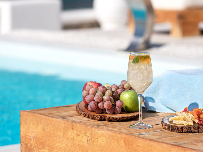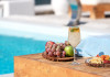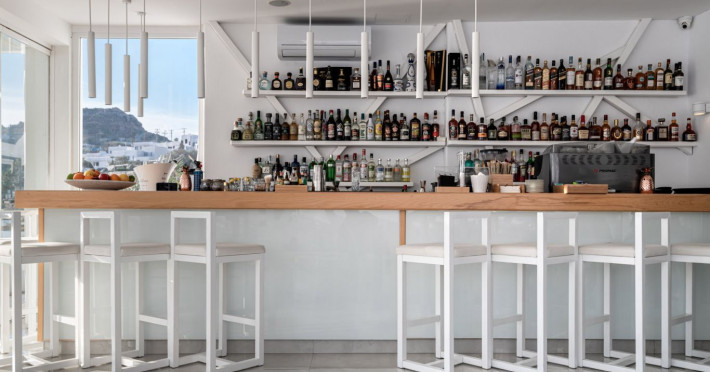 The 5 star Nissaki Boutique Hotel's Pool Bar is the ideal Mykonos spot for enjoying a cup of coffee, a drink or a delicious fresh fruit cocktail by the pool.The elegantly designed Nissaki Pool Bar creates a serene atmosphere, blending harmoniously with the Mykonos nature. Discover the true beauty of Mykonos in Cyclades, Greece with this breathtaking 5 star boutique hotel in Mykonos and enjoy genuine luxurious holidays.