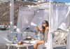 PHOS RESTAURANT Bar Restaurant faces the captivating Mykonos beach, the renowned Psarou, offering the ideal view for tasting the local delicacies. The Phos bar restaurant, with the romantic white and light blue decoration is a jewel amongst Restaurant bars in Mykonos.