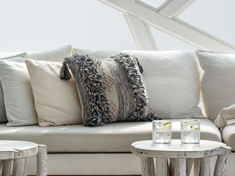 The 5 star Nissaki Boutique hotel's swimming pool is a unique site. Bathed in the sunlight, that sparkles as it touches the all white surrounding, the swimming pool with the comfortable, earth tone sun beds, blending in so naturally, seems more like a summer dream.