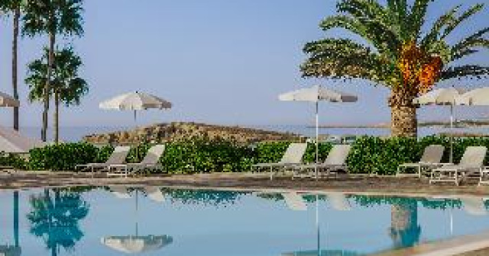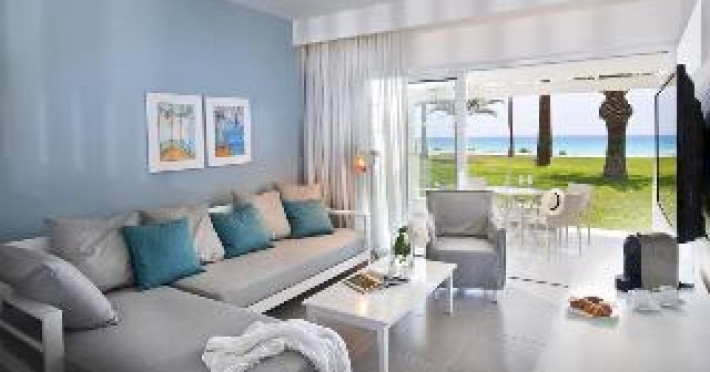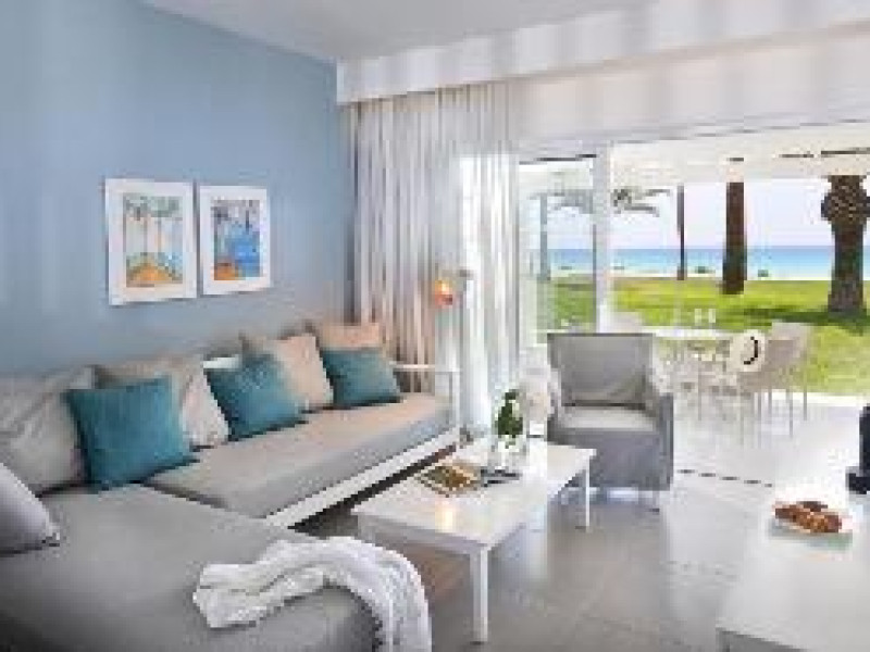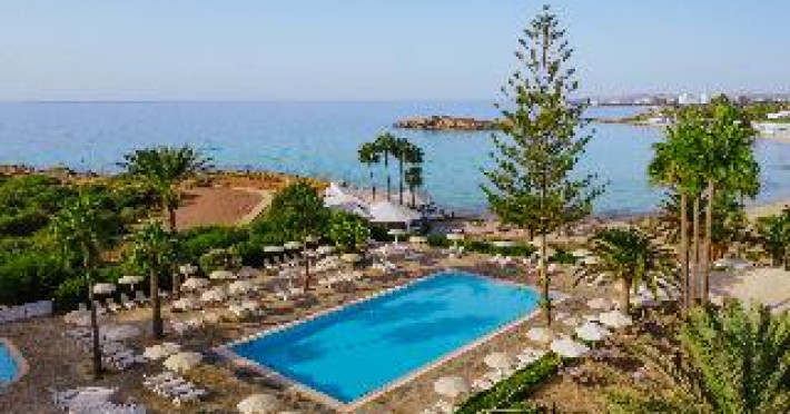 This hotel and bungalow complex lies directly between the soft white sands of Nissi beach and expansive tropical gardens near the town of Aiya Napa. Guests will find numerous shops, restaurants, and cafés in the town, and can visit the Municipal Museum. Rooms are bright and feature contemporary furnishings and picturesque garden or sea views. The hotel complex provides a variety of family-friendly conveniences including a minimarket, a kids' club, two playgrounds, and a children's pool in addition to an outdoor pool and heated indoor pool. Guests can sample Cypriot specialties in the tavern, enjoy a casual breakfast buffet and dinner in the restaurant, and find drinks and snacks throughout the day at the poolside snack bar and beach kiosk.