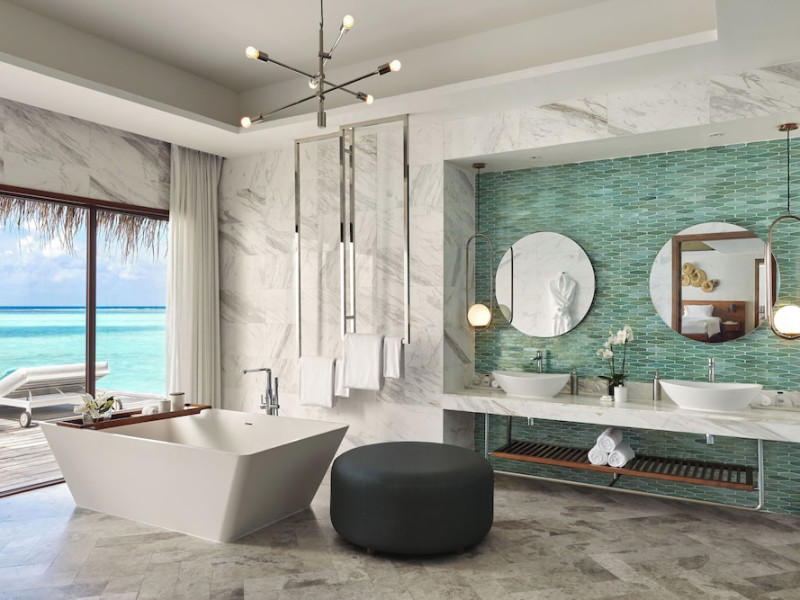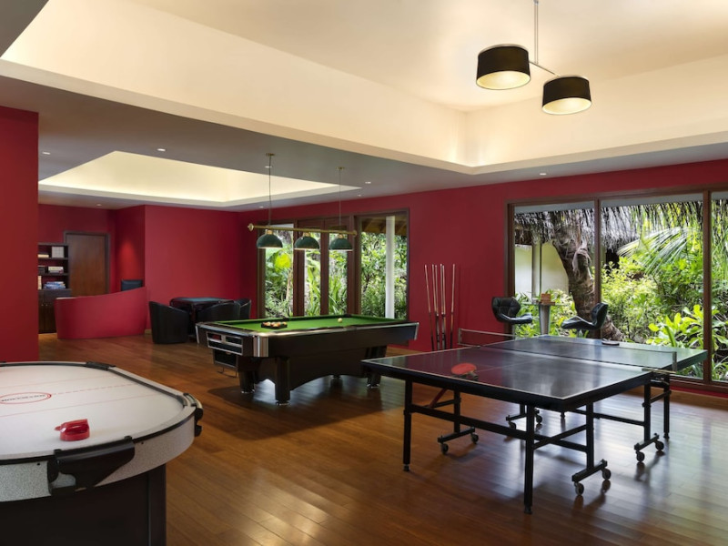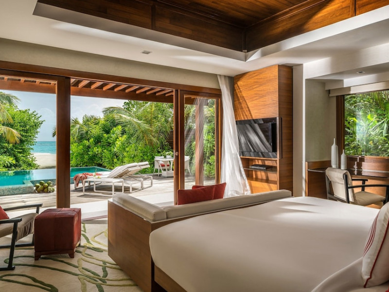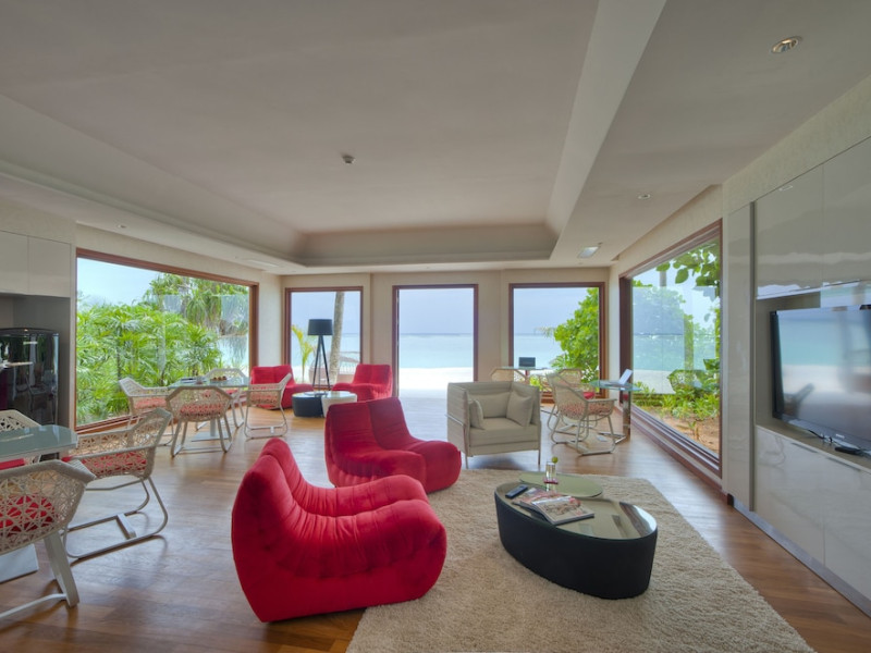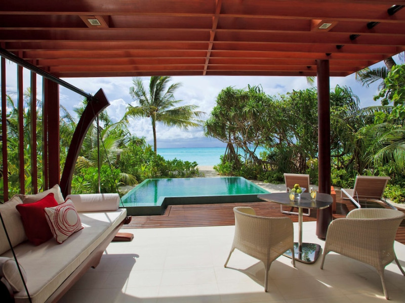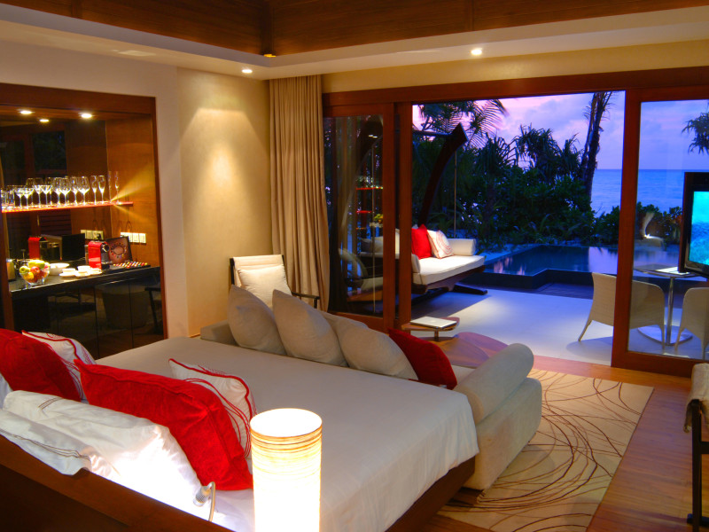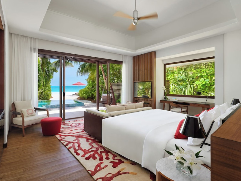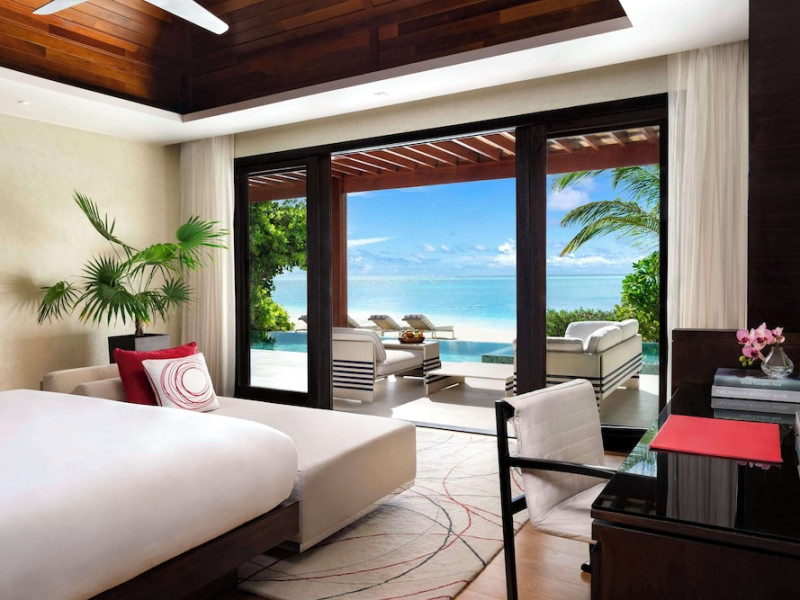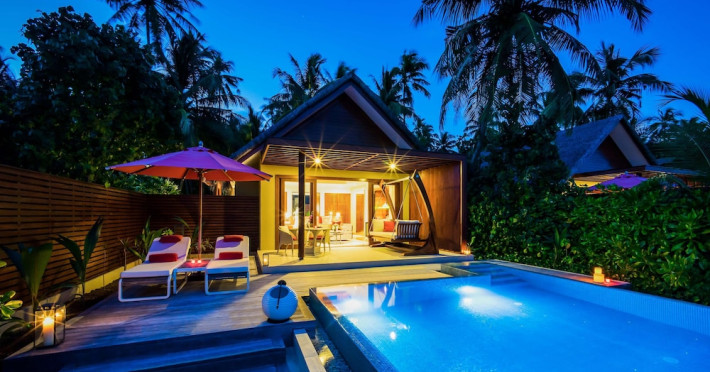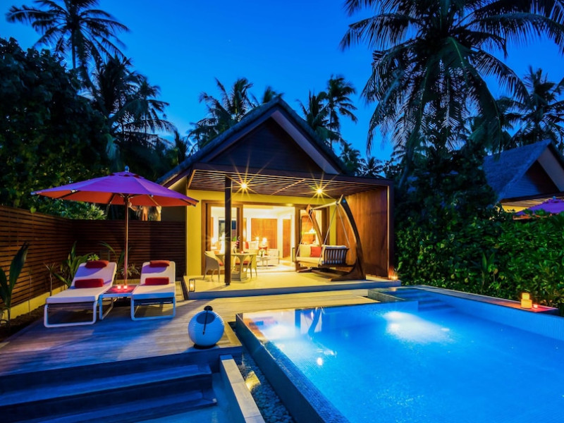 Escape to Olhuveli Island in the Maldives, a private island paradise accessible via a 40-minute seaplane ride from Malé International Airport. Relax on the private beach, take a dip in one of two outdoor pools, or indulge in pampering treatments at the spa. Enjoy guided snorkeling or fishing trips arranged by private butlers. Dine at the overwater restaurant, featuring fresh seafood and premium wines, or choose from seven other restaurants offering diverse cuisines, including Mediterranean options at Blu. Enjoy 24-hour room service and refreshments at multiple bars and cafes. Guest rooms feature minibars, DVD players, memory foam beds with premium bedding, private balconies or patios, complimentary wired and wireless internet, and 40-inch LED TVs. Bathrooms include separate bathtubs and showers with rainfall showerheads. Additional amenities include a business center, dry cleaning services, a nightclub, a sauna, concierge services, and babysitting (surcharge). A complimentary buffet breakfast is served daily. Airport shuttle available for a surcharge. The resort is within the region of Kandima Beach and Vommuli Pier, and is 0.6 km from Kudahuvadhoo Mosque. The Niyama Private Islands Maldives is a Full Service, Modern, Tourist hotel. The nightlife/restaurants are located in the hotel.